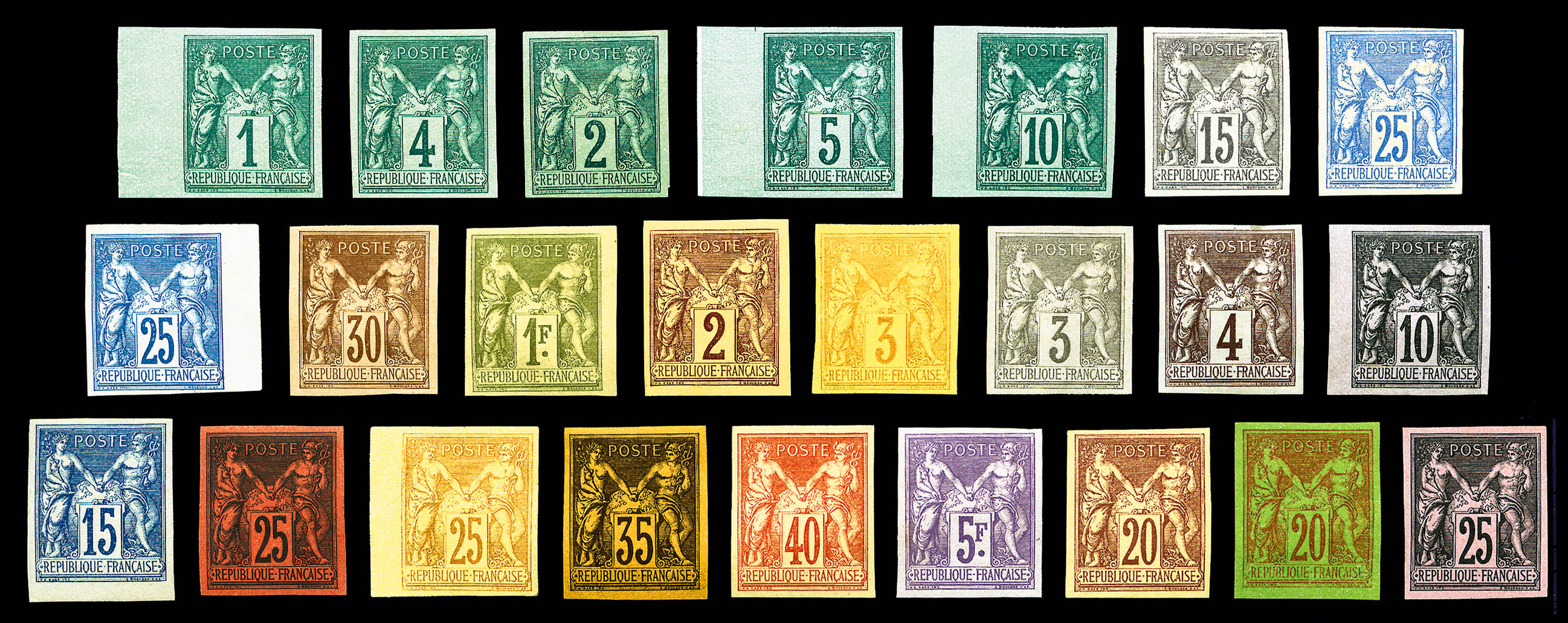 993 N imageGranet, série complète dont n°73c, 77c, 95c, les 27 valeurs. SUPERBE. R.R. (certificat) Qualité: N Cote: 8800 euros (Image)