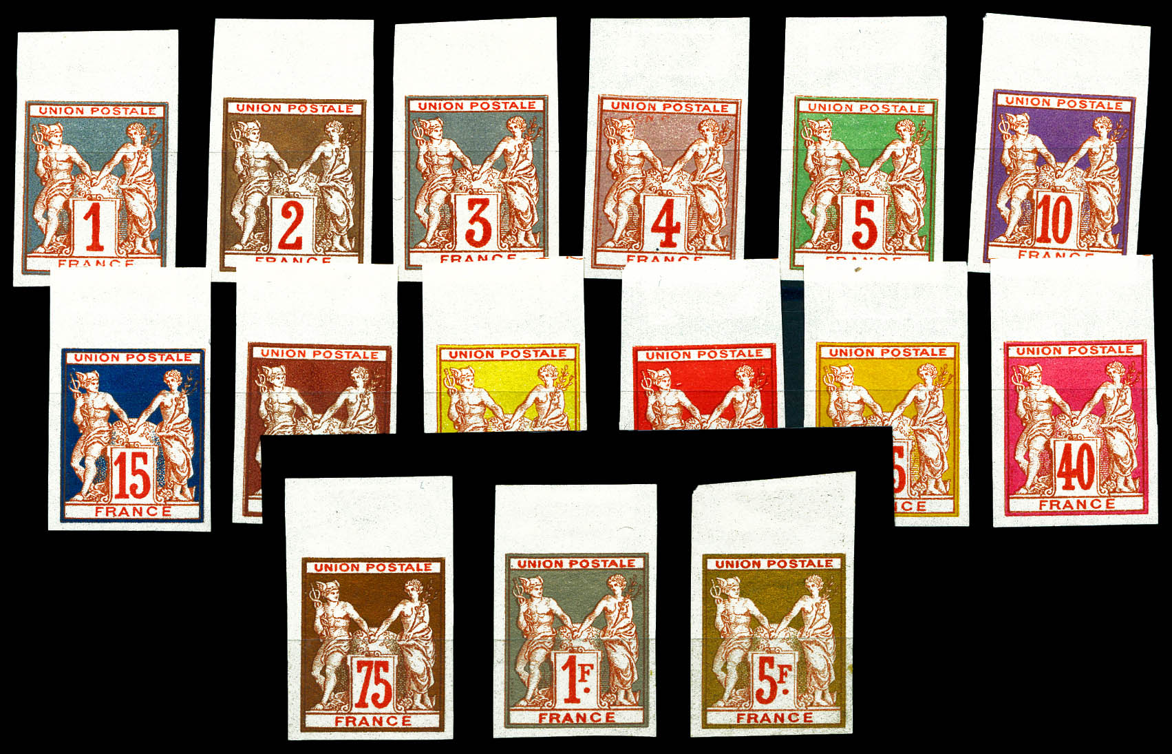 1046 ng imageProjet Pichot d'octobre 1880 'Union postale de France', du 1c au 5F, les 15 valeurs bdf, R.R. SUP (certificat) Qualité: (*) (Image)
