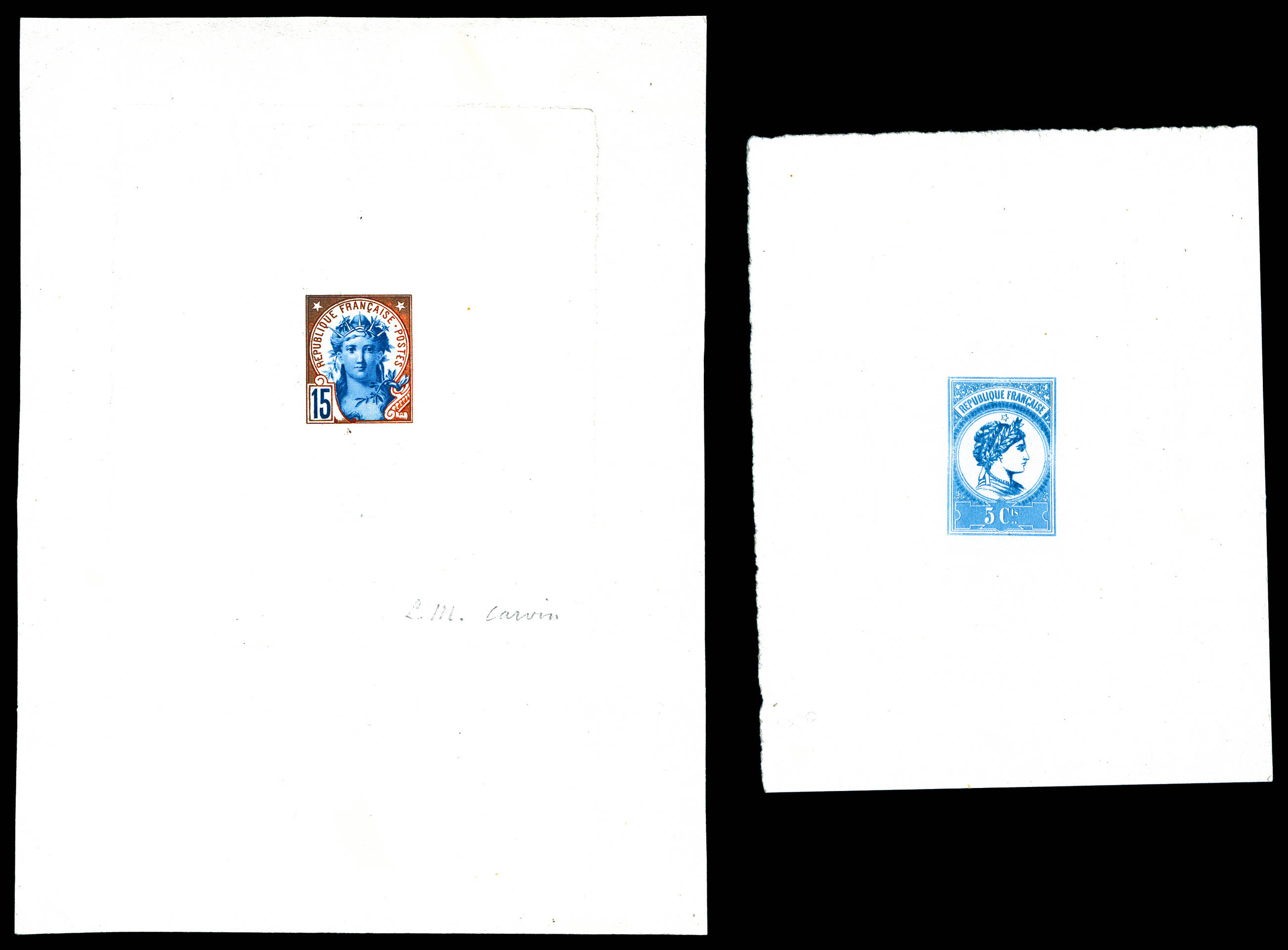 1047 ng imageProjets privés. 2 épreuves non émises dont une signée 'L.M. Carvin', sans doute pour le concours des timbres 1894. TB (certificat) Qualité: (*) (Image)