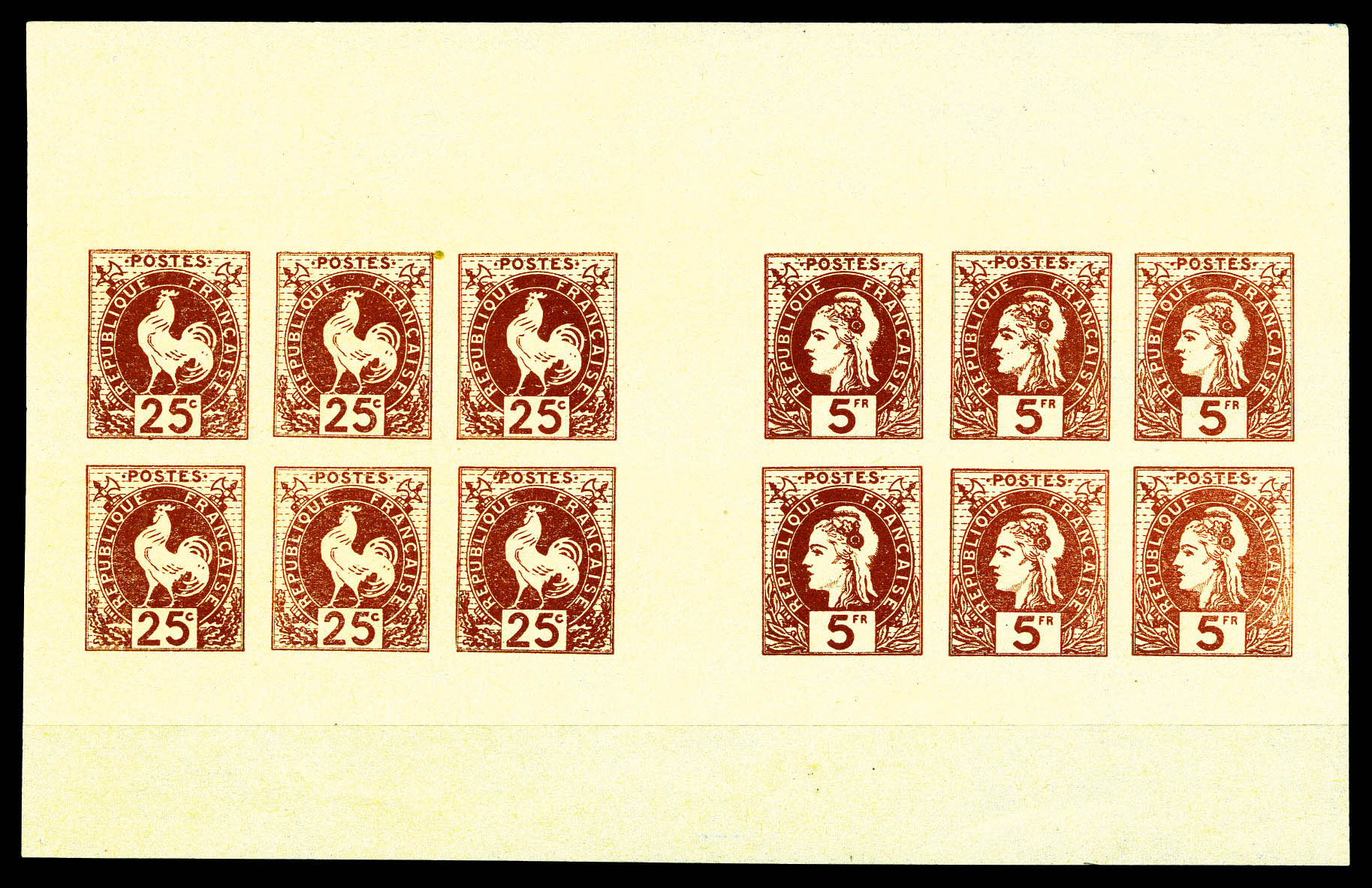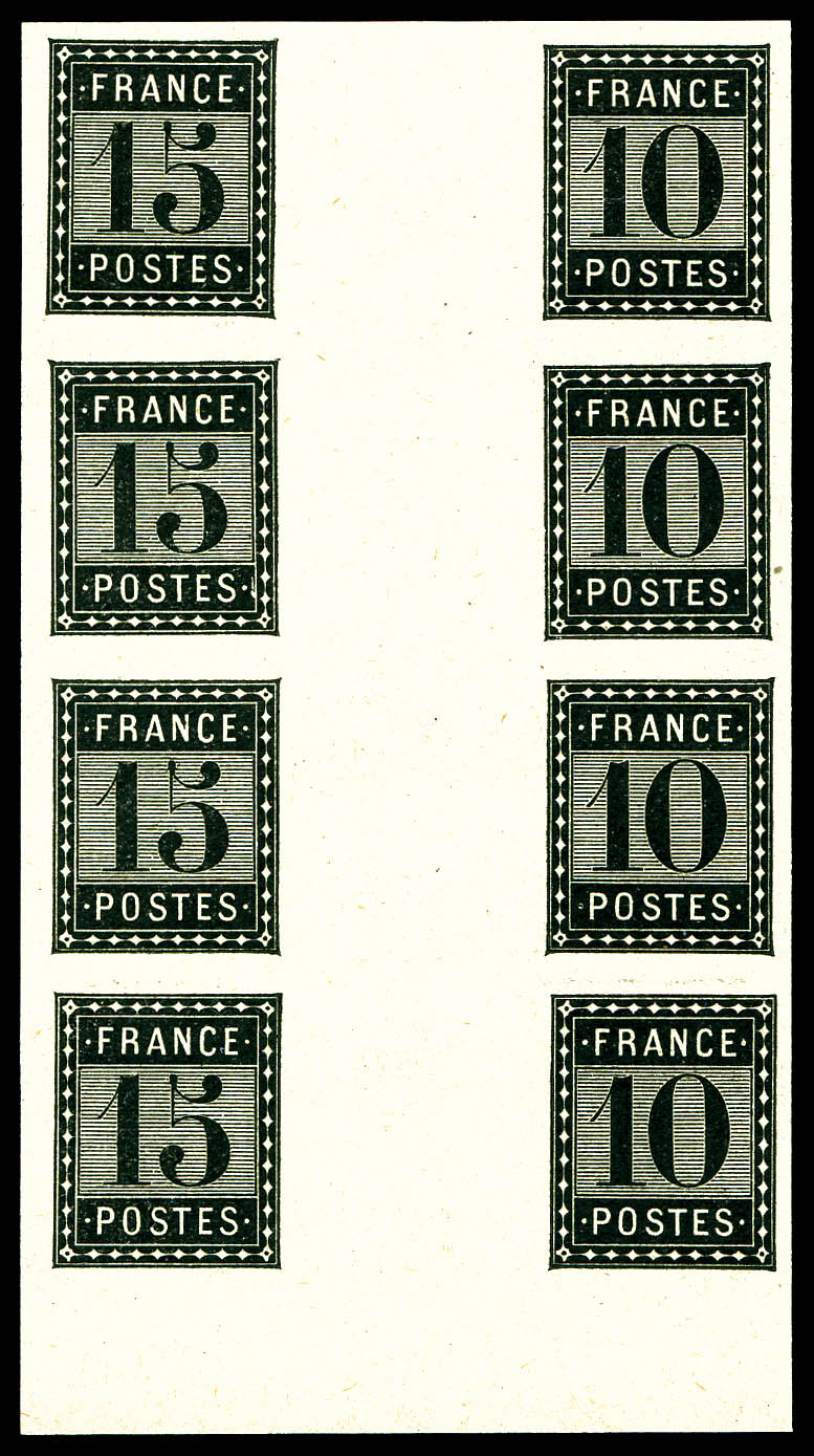 1049 ng imageEssais de l'imprimerie Nationale, 10c & 15c noir: 4 paire avec interpanneau, bas de feuille, TTB (certificat) Qualité: (*) Cote: 4800 euros (Image)