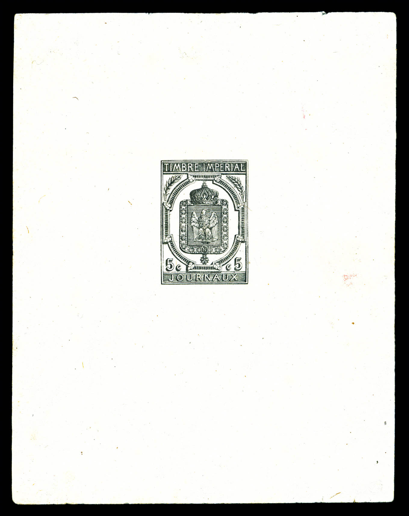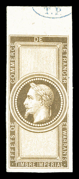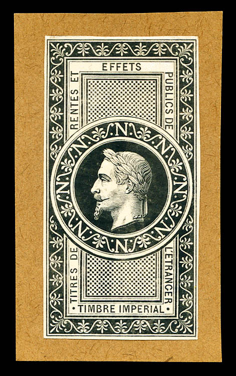 1053 ng imageEffets de commerce, Napoléon III, épreuve sans valeur faciale en gris (impression fine) sur papier carton bdf avec cachet controle 'T.P', TTB (certificat) Qualité: (*) (Image)