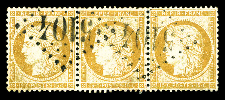 1136 imageN°59, 15c bistre, bande de 3 obl GC '5404'. TTB Qualité: Oblitéré Cote: 210 euros (Image)