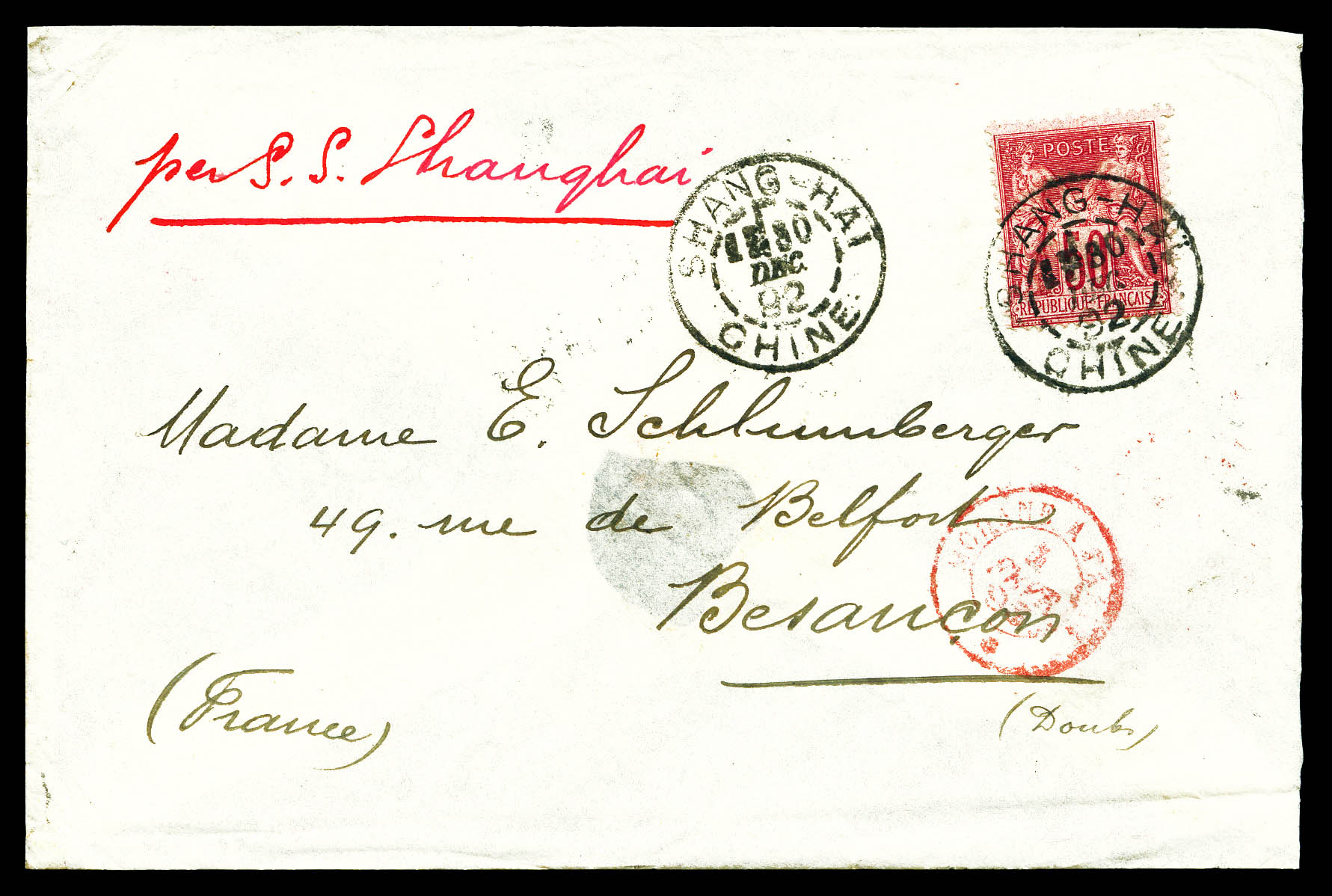 1137 imageN°98, 50c rose type II obl càd SHANGHAI CHINE du 30 dec 92 sur lettre pour BESANCON. TB (certificat) Qualité: Oblitéré (Image)