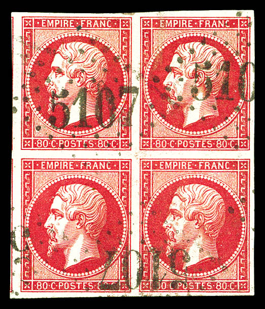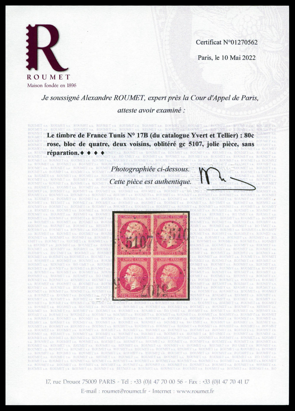 1138 imageN°17B, 80c rose en bloc de quatre obl GC 5107 de TUNIS, belles marges avec voisins. TTB. R. (signé Brun/certificat) Qualité: Oblitéré (Image) (imagea) (All Images)