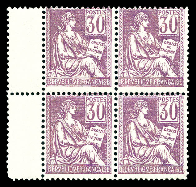 N°115, Mouchon, 30c violet en bloc de quatre bord de feuille latéral, TB (certificat) Qualité: ** Cote: 1280 euros (Image)