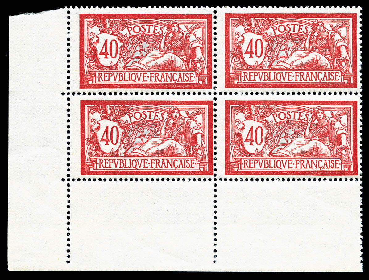 N°119, Merson, 40c rouge et bleu en bloc de quatre coin de feuille, SUP Qualité: ** Cote: 260 euros (Image)