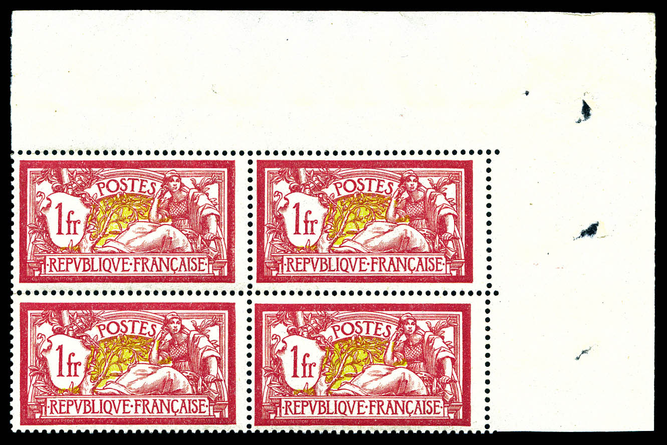N°121, Merson, 1F lie de vin et olive en bloc de quatre cdf, TB Qualité: ** Cote: 460 euros (Image)