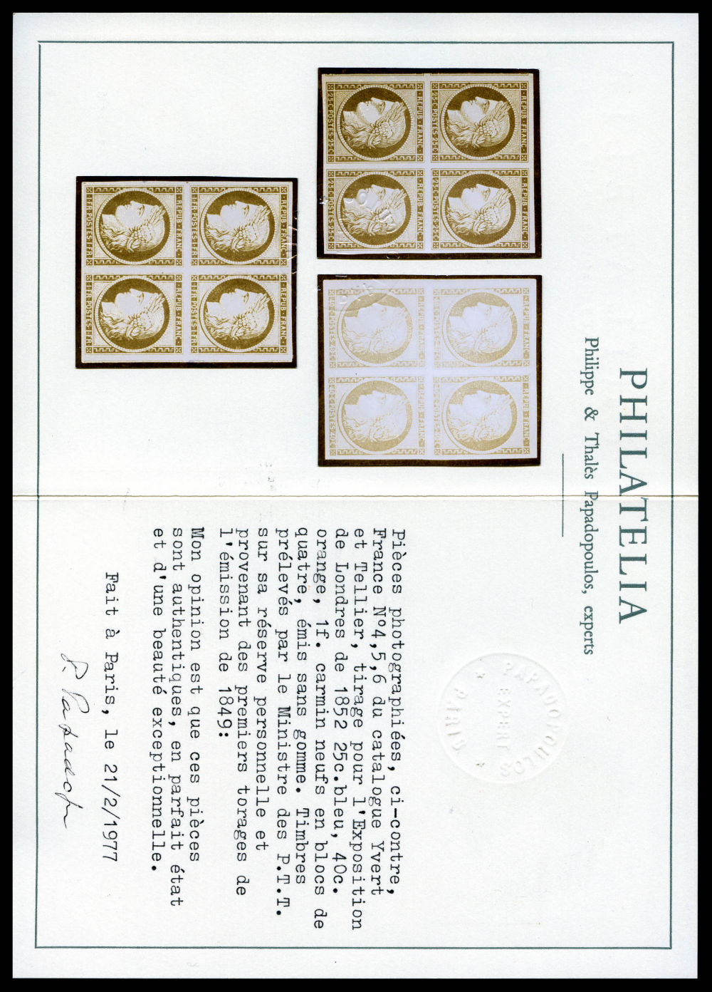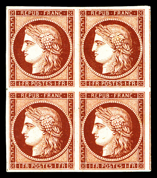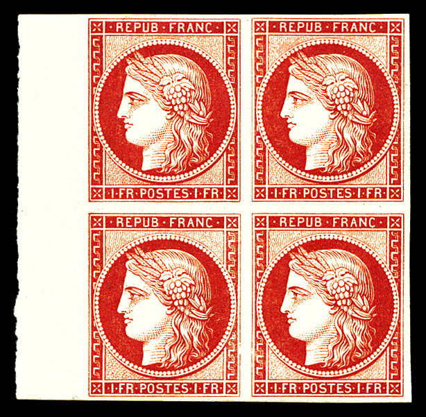 N°6g, 1F carmin foncé en bloc de quatre, Tirage de Londres, toujours sans gomme. SUPERBE. R.R. (Certificats) Qualité: (*) (Image) (imagea)