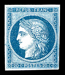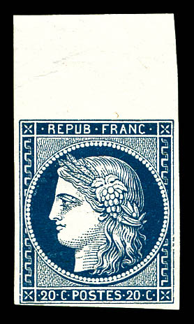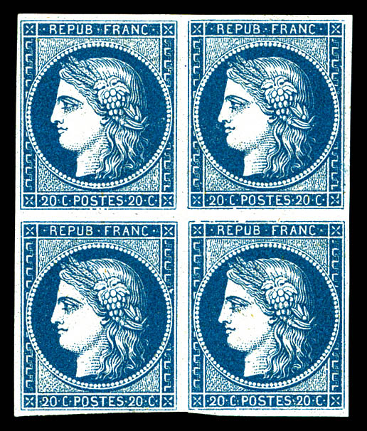 N°8c, Non émis, 20c bleu sur jaunâtre: tête-bêche tenant à normaux dans un bloc de neuf bord de feuille latéral avec fond de sûreté. GRANDE RARETE DE LA PHILATELIE FRANCAISE. SUPERBE. R.R.R. (signé