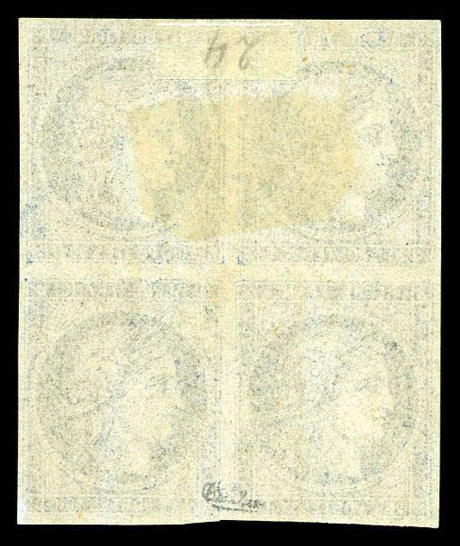 N°8b, Non émis, 20c bleu sur azuré en bloc de quatre, grande fraîcheur, RARE et SUP (signé Calves/certificat) Qualité: (*) Cote: 23000 euros (Image)