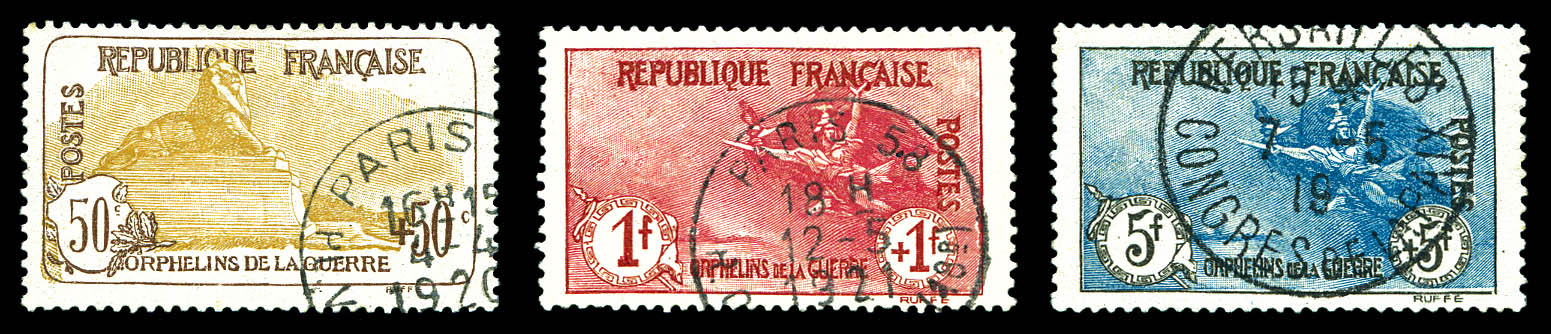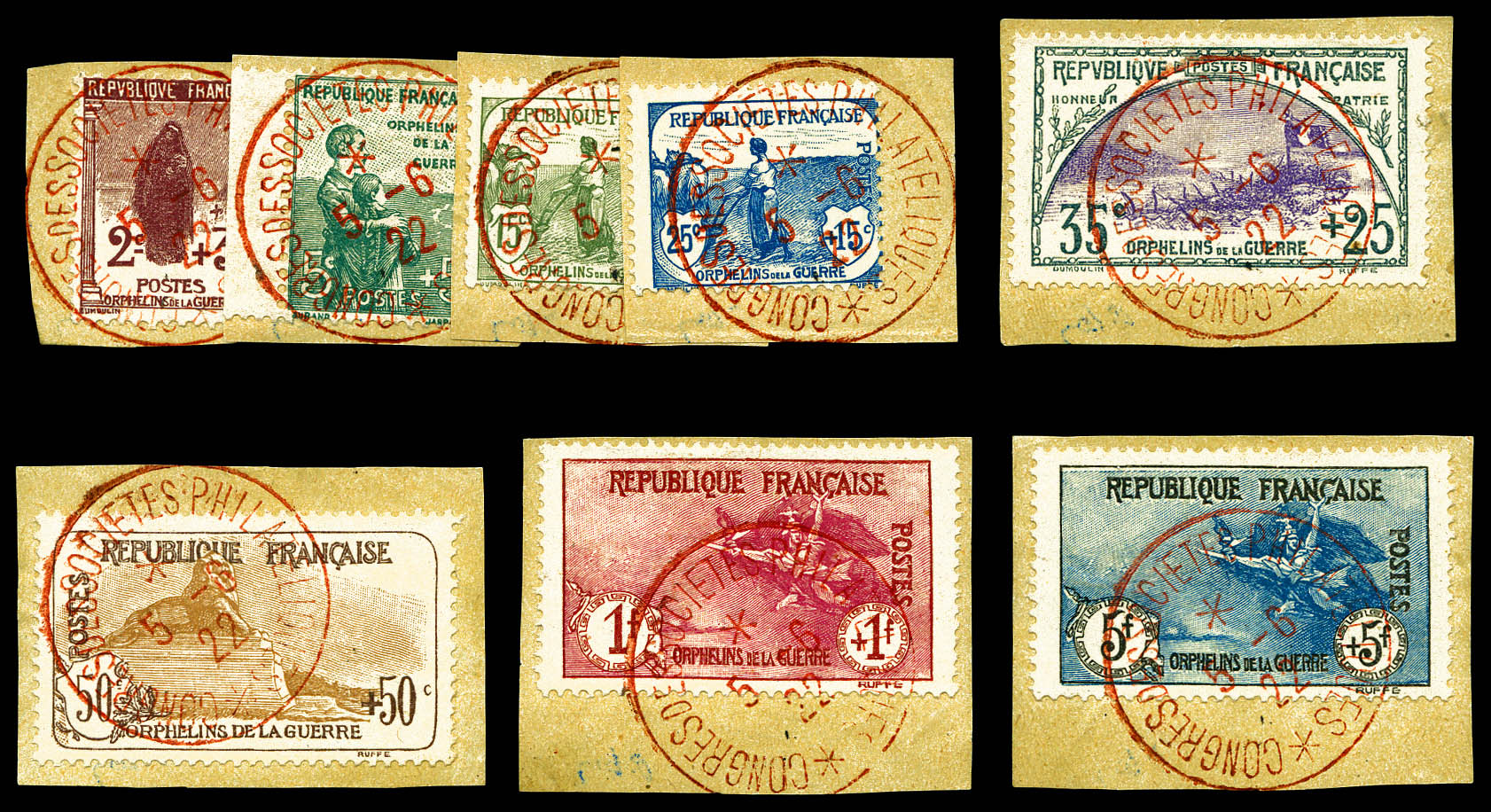 N°148/155, Série Orphelins oblitérée en rouge sur fragment du 5 juin 1922. Très bon centrage. SUP. R. (certificat) Qualité: Oblitéré