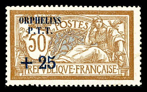 (Maury N°5F), Non émis: Merson 50c +25c brun et gris surchargé 'ORPHELINS P.T.T', SEULE PIECE CONNUE. SUPERBE (certificats) Qualité: