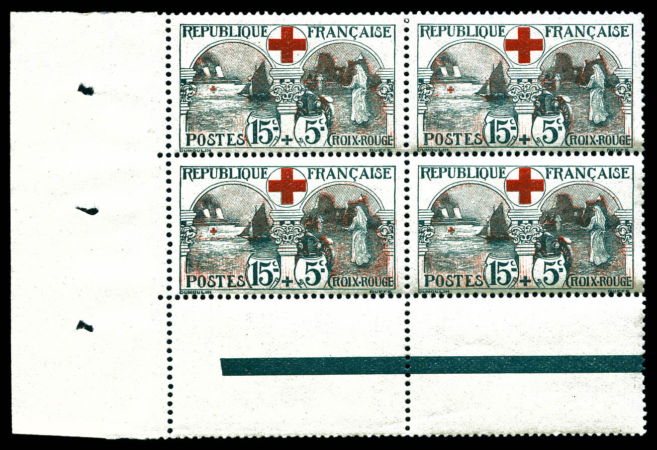N°156, Infirmière, 15c +5c noir et rouge en bloc de quatre coin de feuille, TB (certificat) Qualité: ** Cote: 1200 euros (Image)