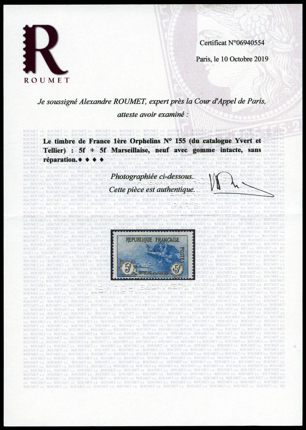 N°155, Orphelins, 5F +5F noir et bleu, frais. TTB (signé/certificats) Qualité: ** Cote: 5800 euros (Image) (imagea)