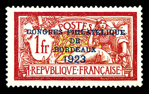 N°182, Congrès de Bordeaux de 1923, très bon centrage, SUP (signé Calves/certificat) Qualité: ** Cote: 1387 euros (Image)