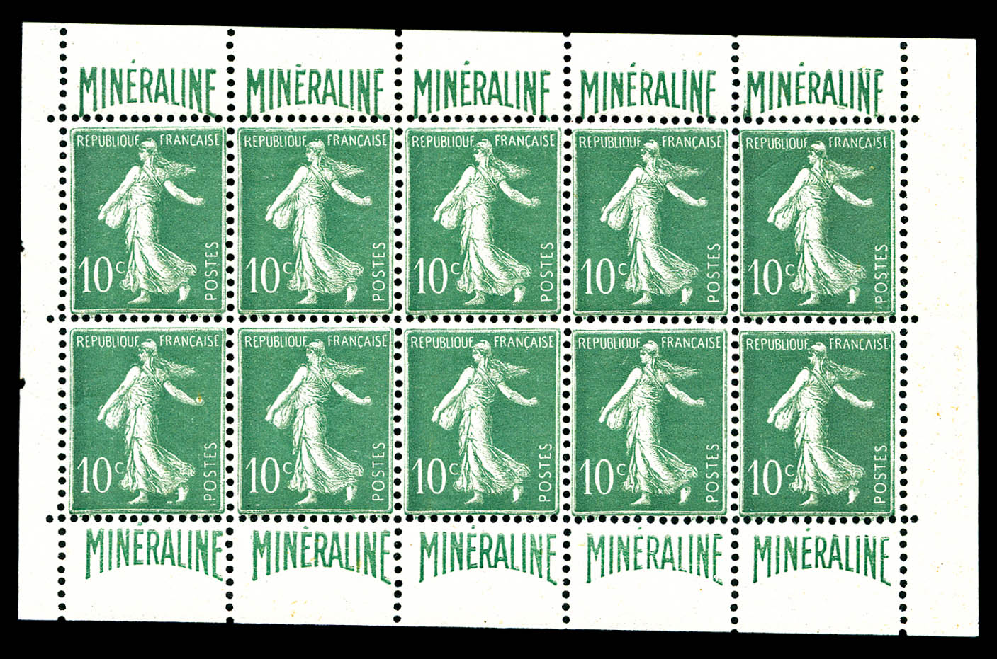 N°188A, Minéraline, 10c vert en bloc de 10 exemplaires, très bon centrage. SUPERBE. R.R. (certificat) Qualité: ** Cote: 10500