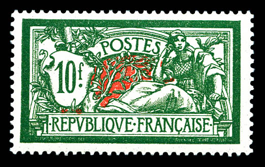 N°207, 10F Merson, très bon centrage. SUP (certificat) Qualité: ** Cote: 555 euros (Image)