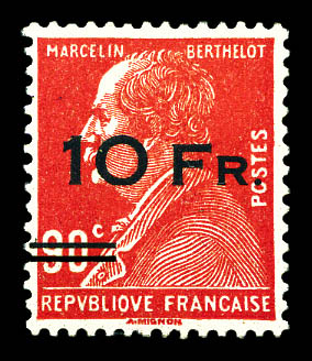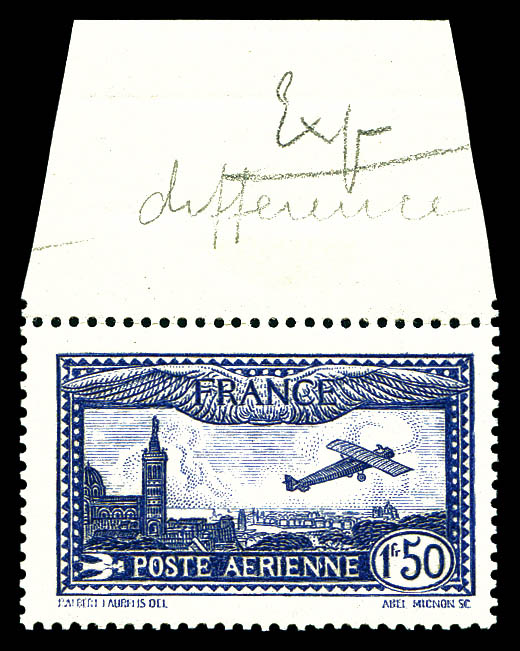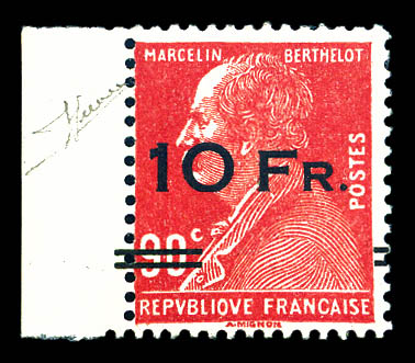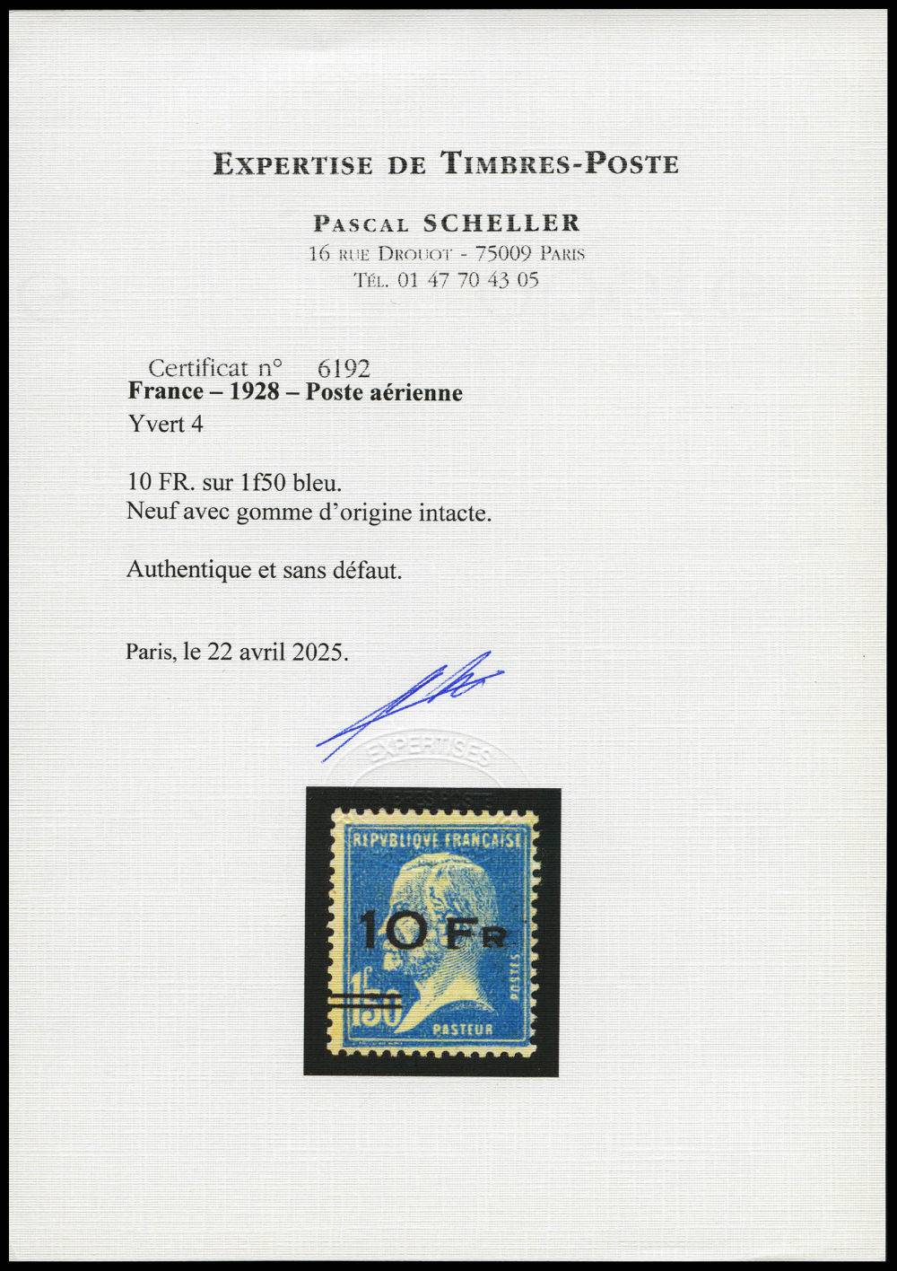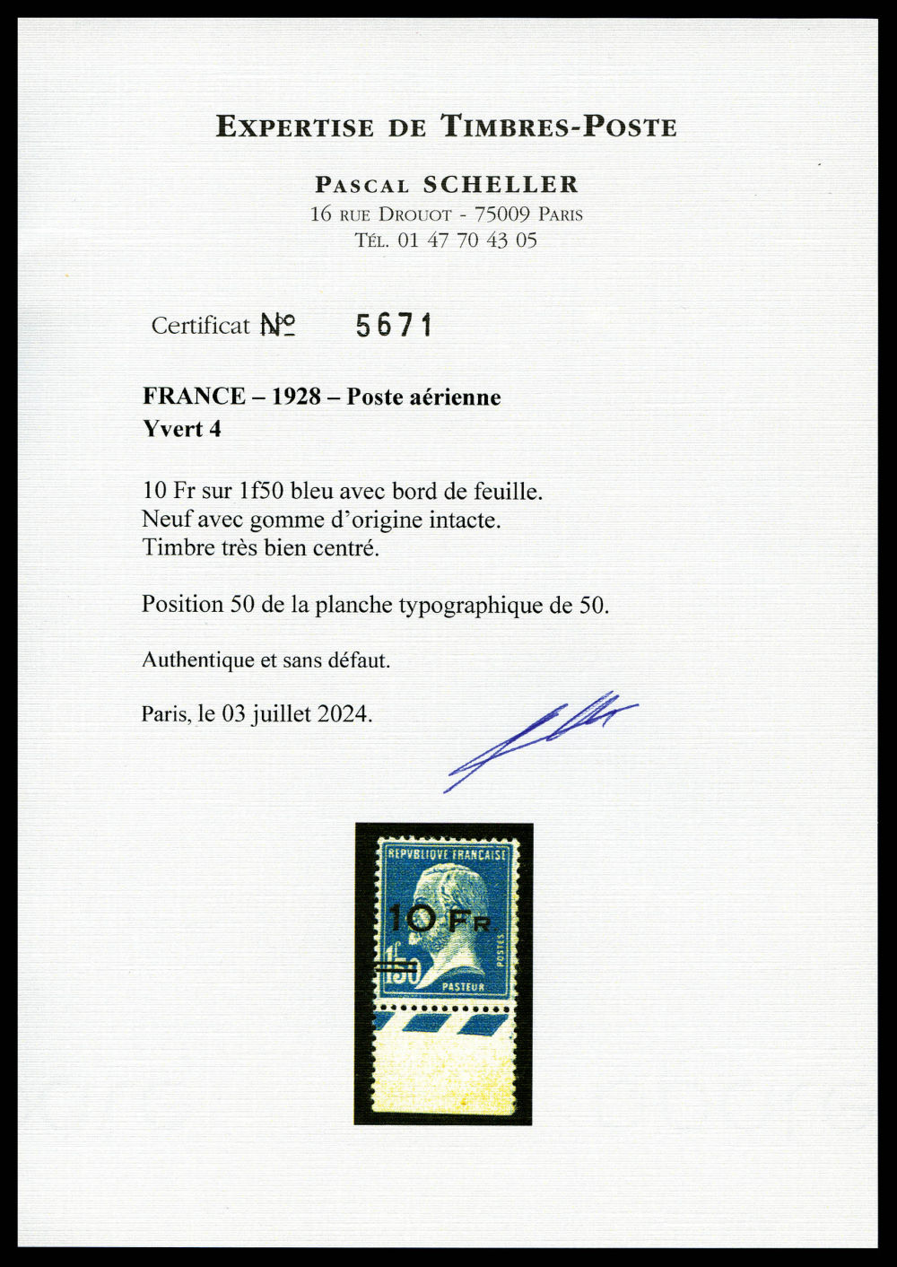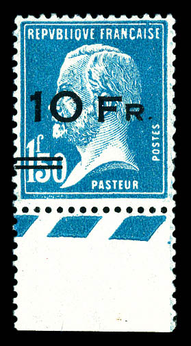 N°4, Pasteur surchargé à bord du paquebot 'ILE DE FRANCE' 10F sur 1,50F bleu, exceptionnelle fraîcheur, SUPERBE, R.R.R (signé
