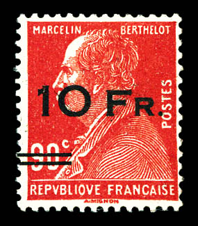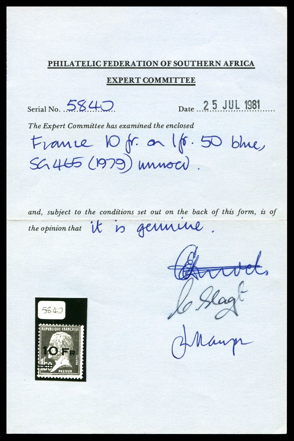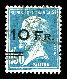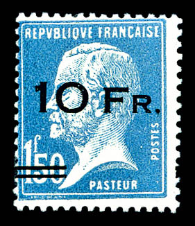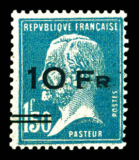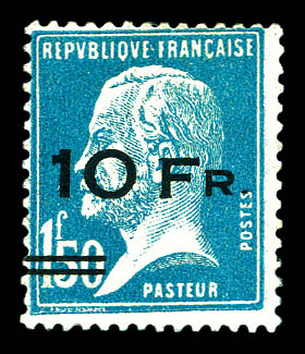 N°4, Pasteur surchargé à bord du paquebot 'Ile de France', 10F sur 1F50 bleu, frais, SUP. R.R. (signé