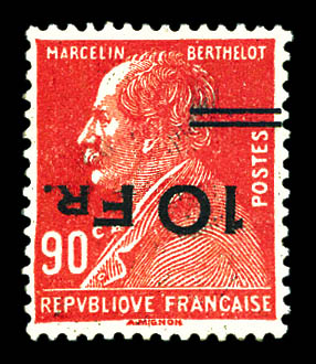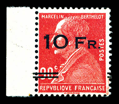 N°3a, Ile de France, Berthelot 10F sur 90c rouge, surcharge renversée, très bon centrage, pièce rare, SUPERBE (signé