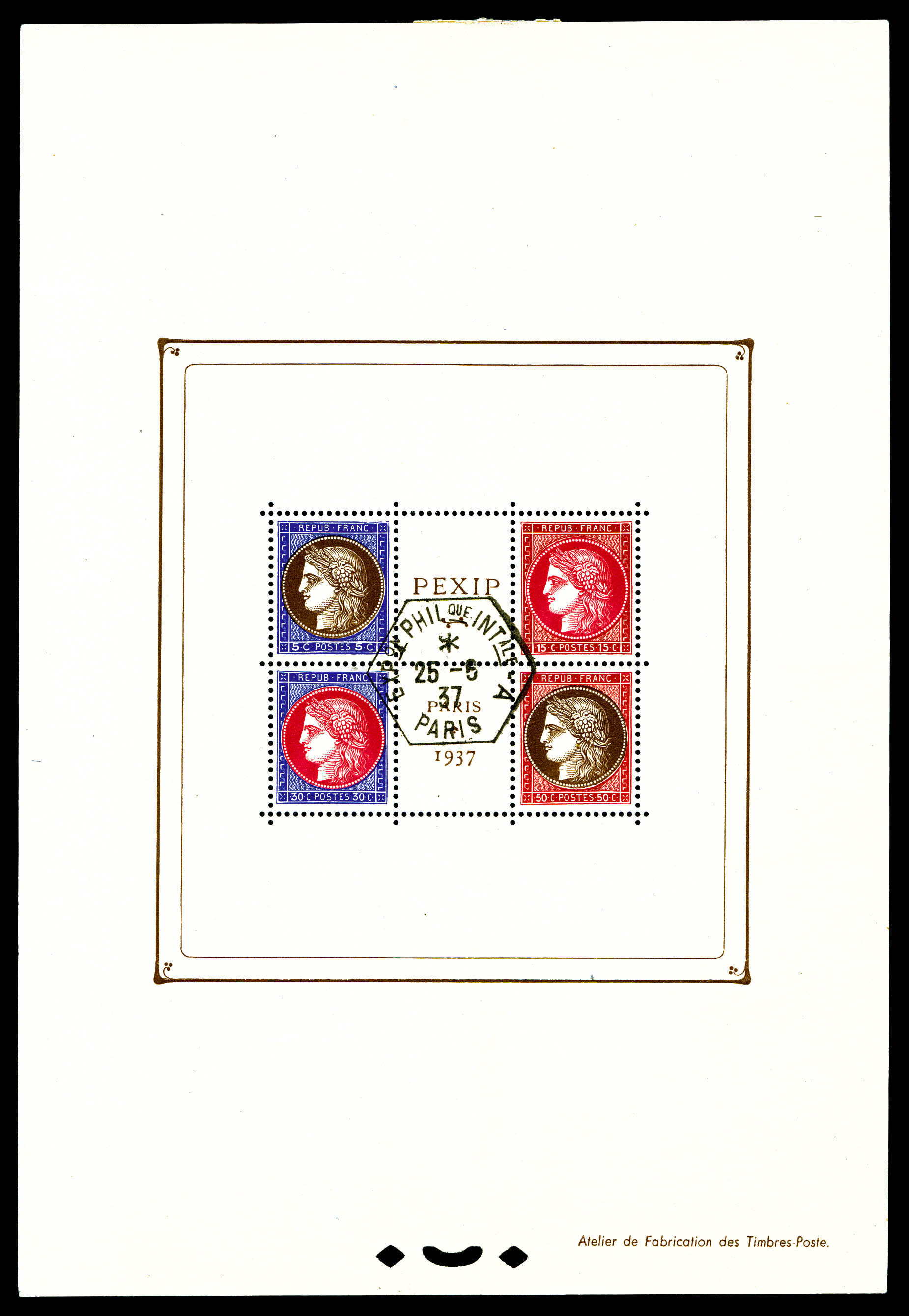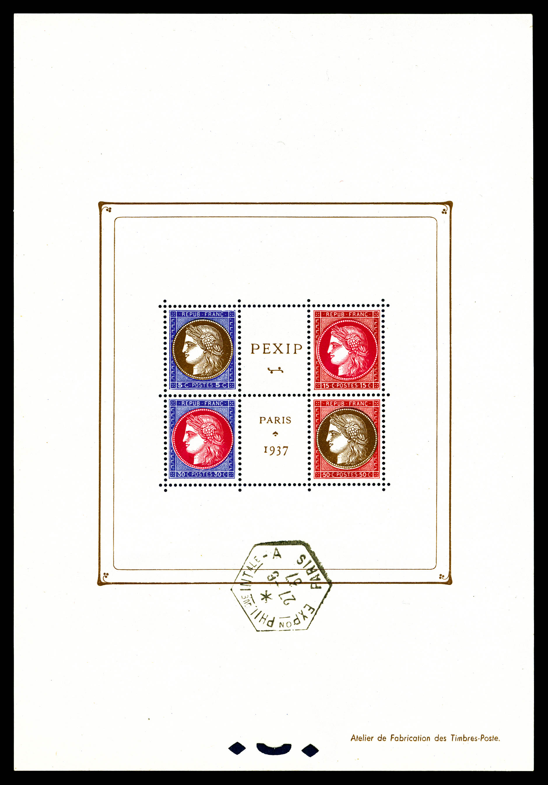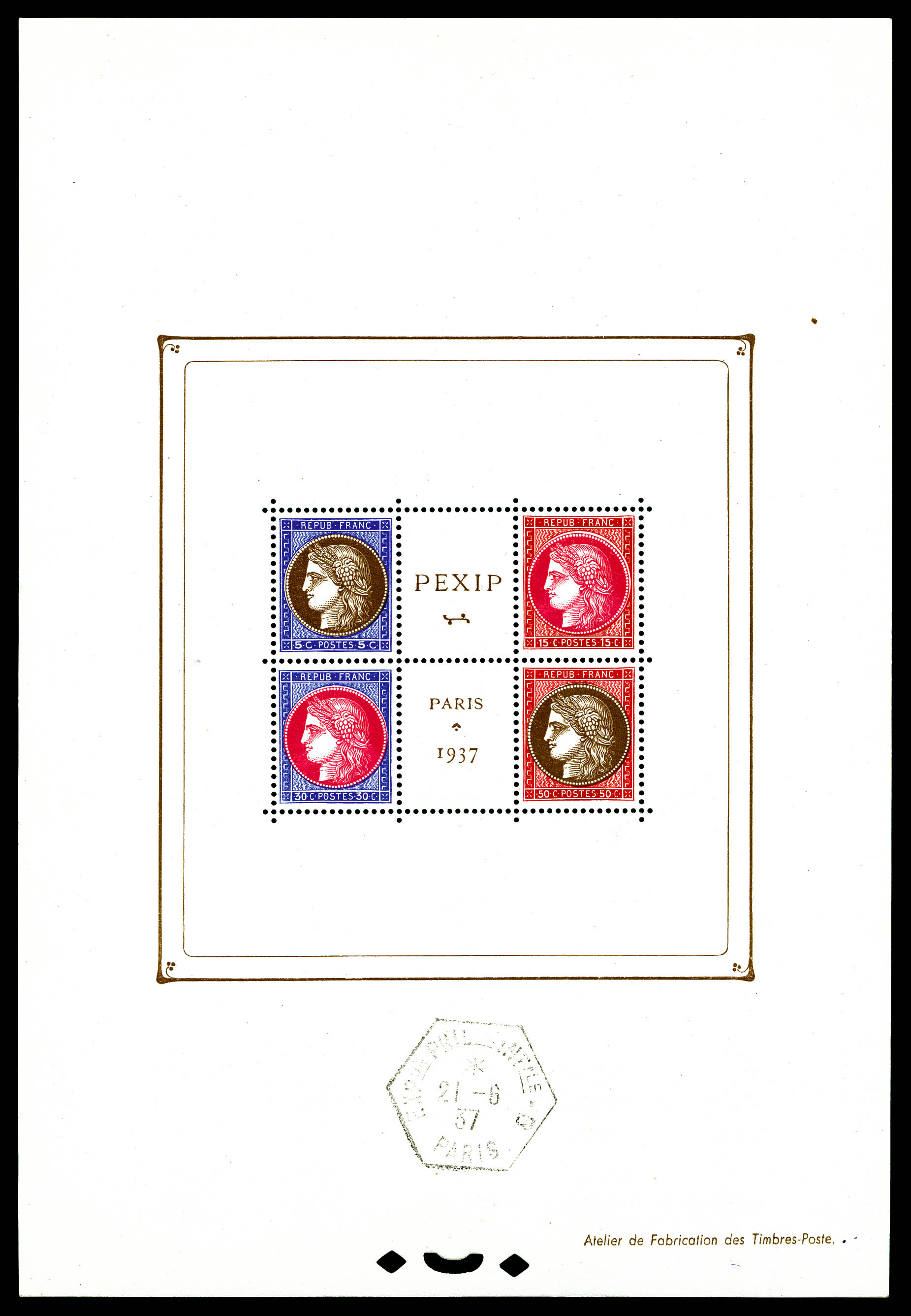 N°3b, Exposition Philatélique de 1937 PEXIP, cachet hors timbres. TTB Qualité: ** Cote: 500 euros (Image)