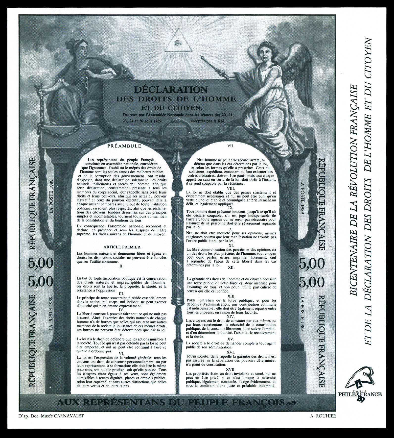N°11b, Bicentenaire de la révolution: feuillet en NOIR non dentelé, TB Qualité: ** Cote: 150 euros (Image)