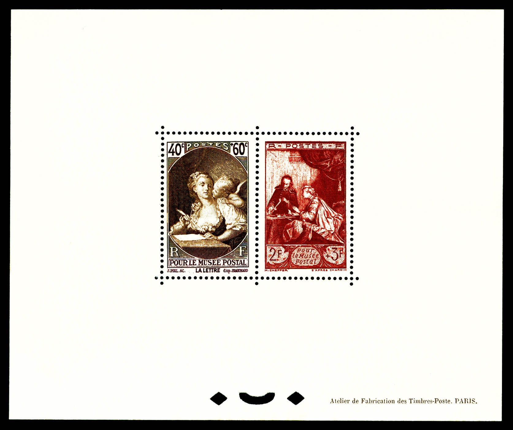 1462 ng imageN°446/753, Lettre de Fragonard et musée postal (toujours sans gomme), tirage 12 exemplaires. RARE et SUP (certificat) Qualité: (*) (Image)