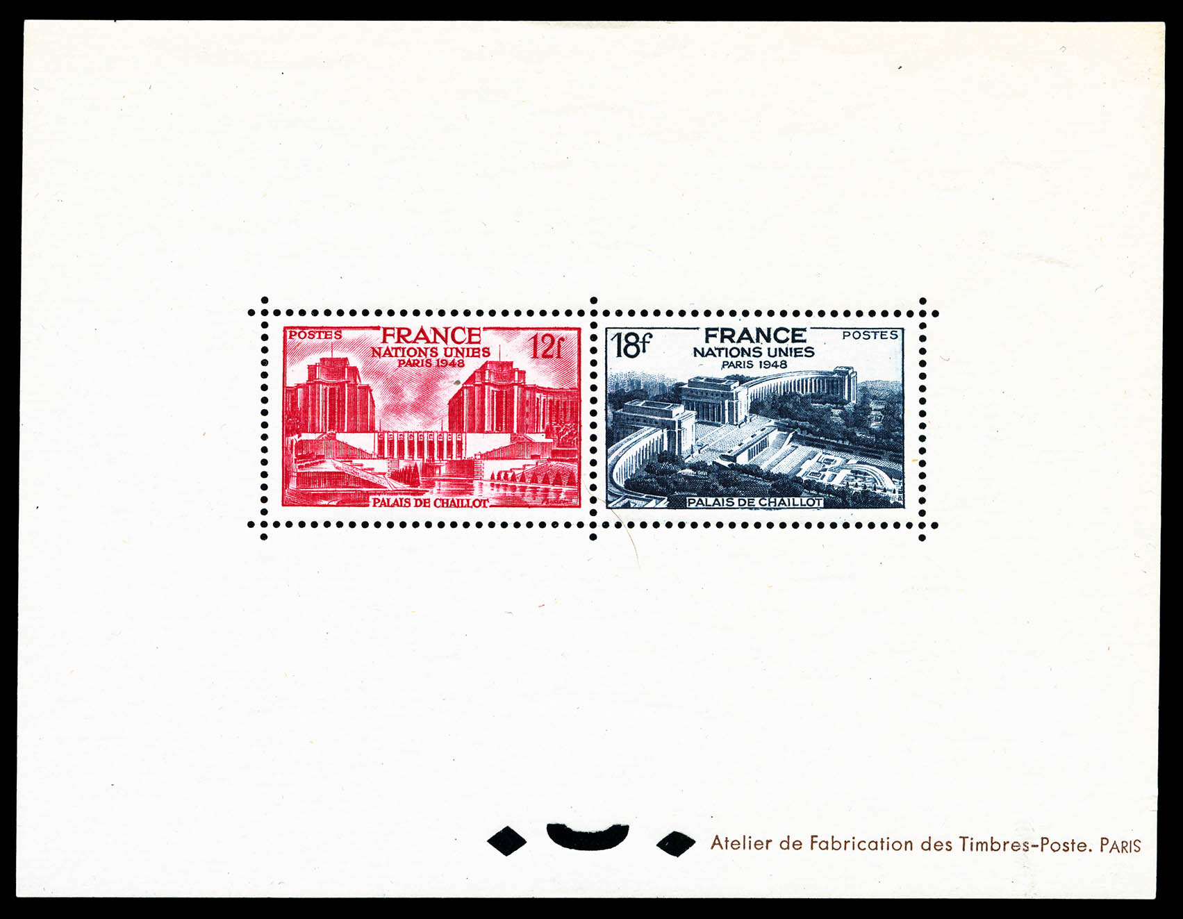 1465 nh imageN°818/819, Palais de Chaillot, la paire en bloc feuillet, tirage 400 exemplaires, rare et TB (certificat) Qualité: ** Cote: 650 euros (Image)