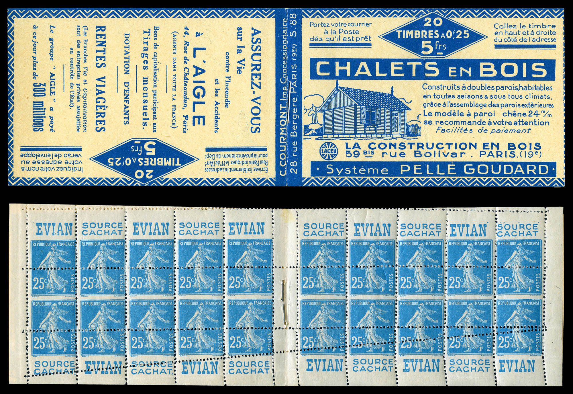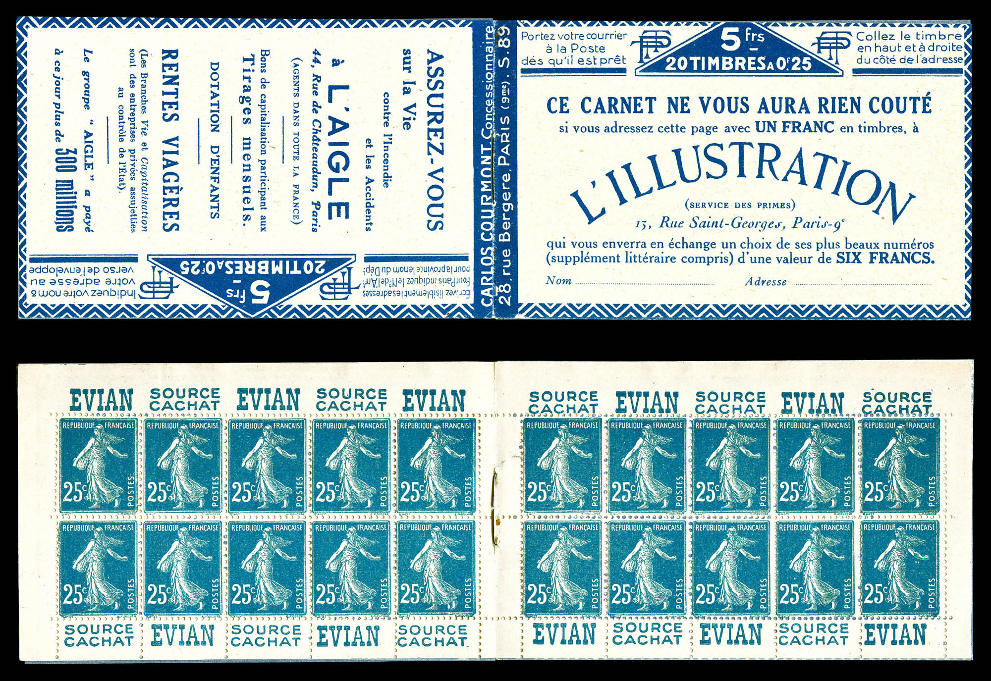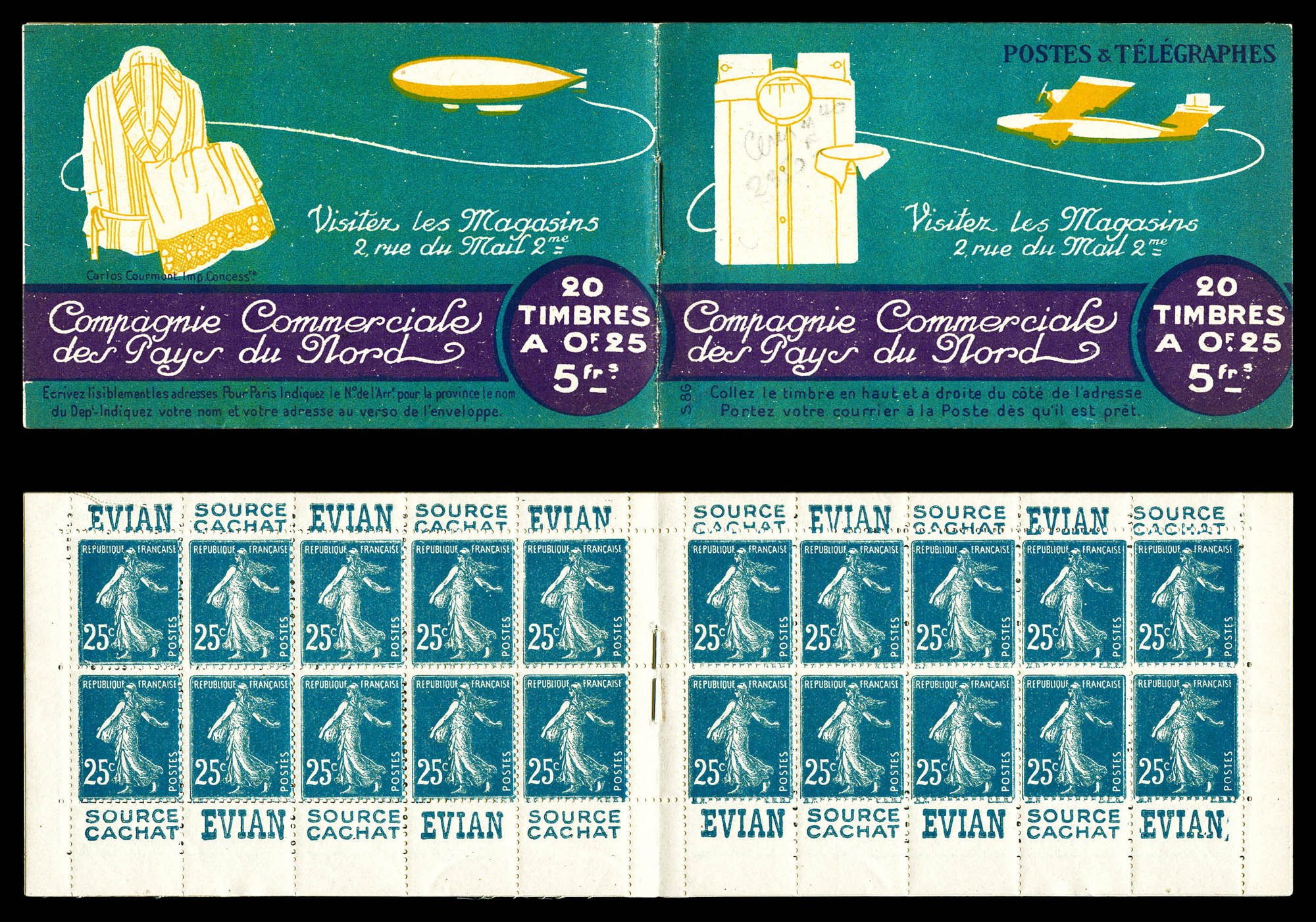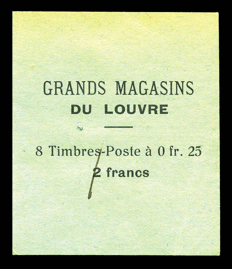 N°140-CM 11a, Carnet monnaie, 'GRANDS MAGASINS DU LOUVRE'. La valeur 2 francs est biffée à la plume pour faire 1 FRANC et un feuillet