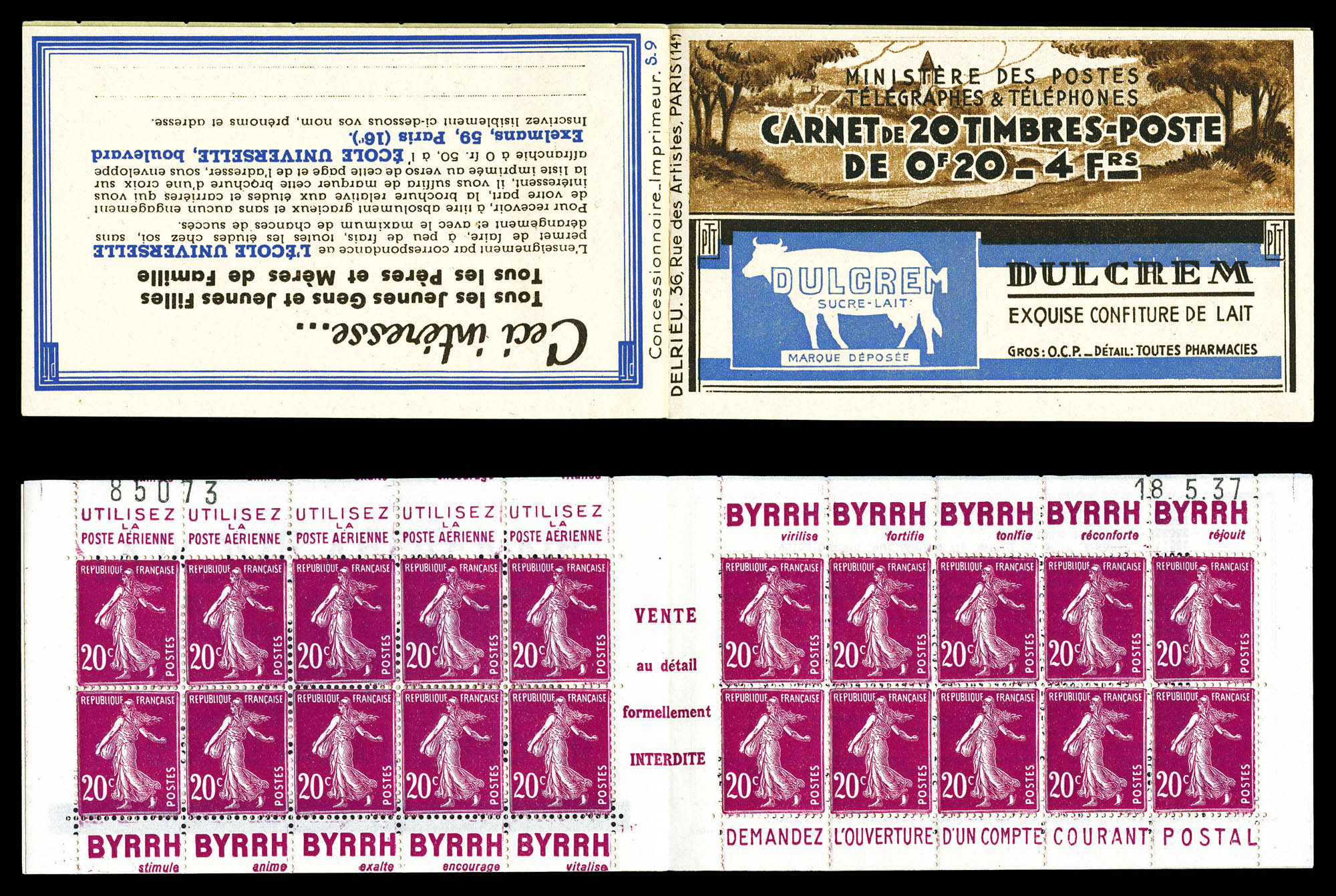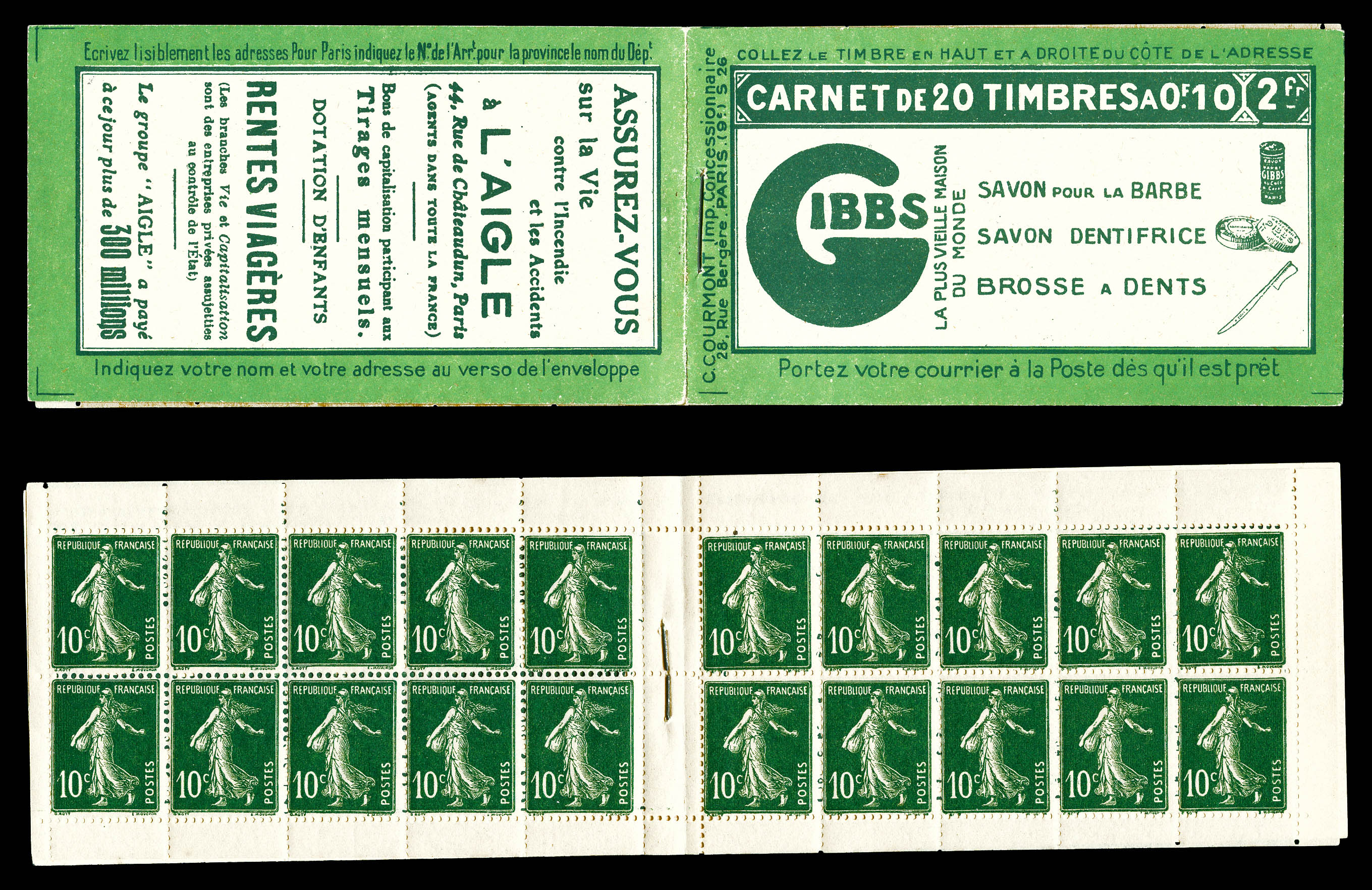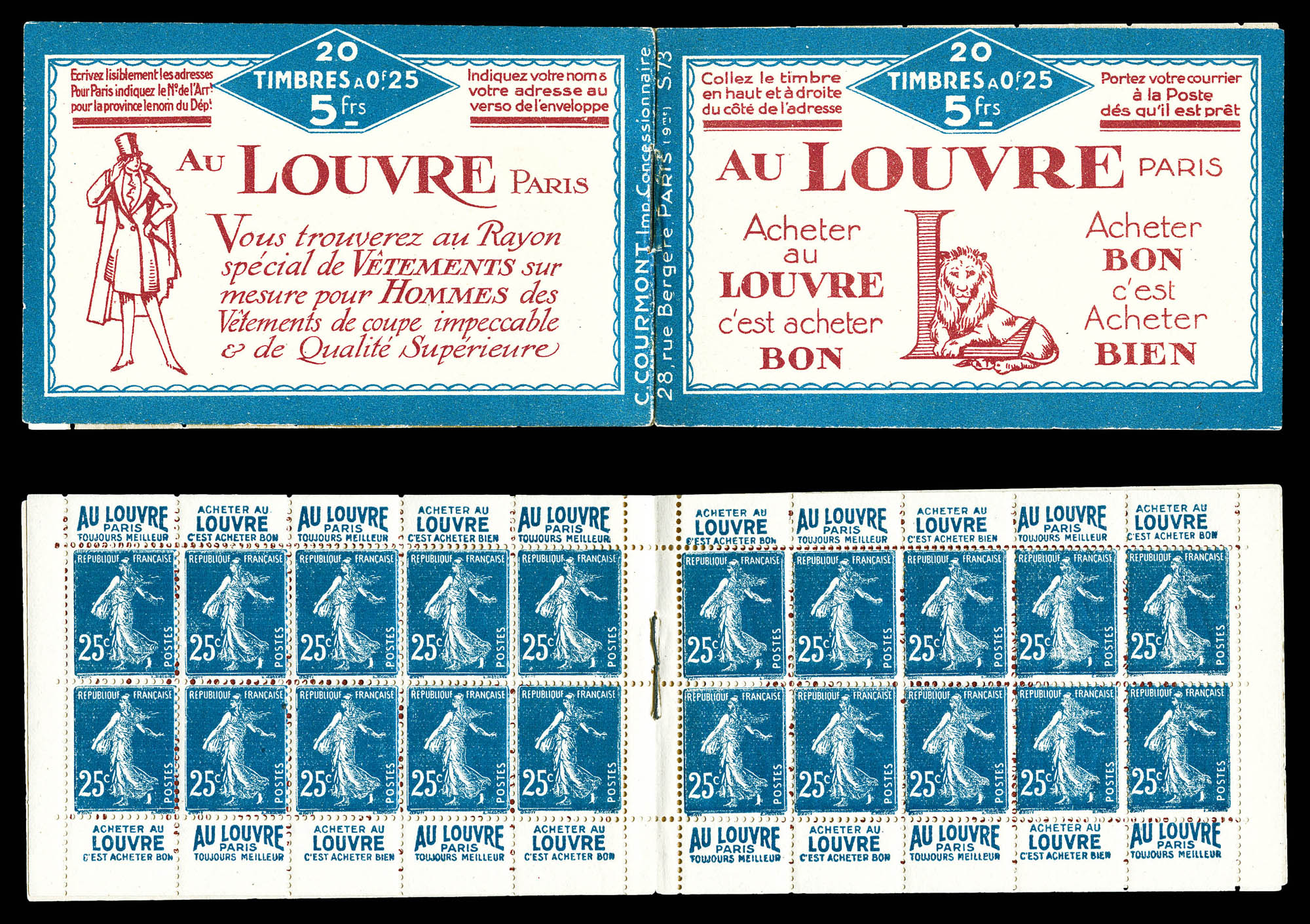 N°140-C13, Série 73-A, CARNET DU LOUVRE, 20 timbres, R.R.R. et SUPERBE (certificat) Qualité: ** (Image) (imagea)