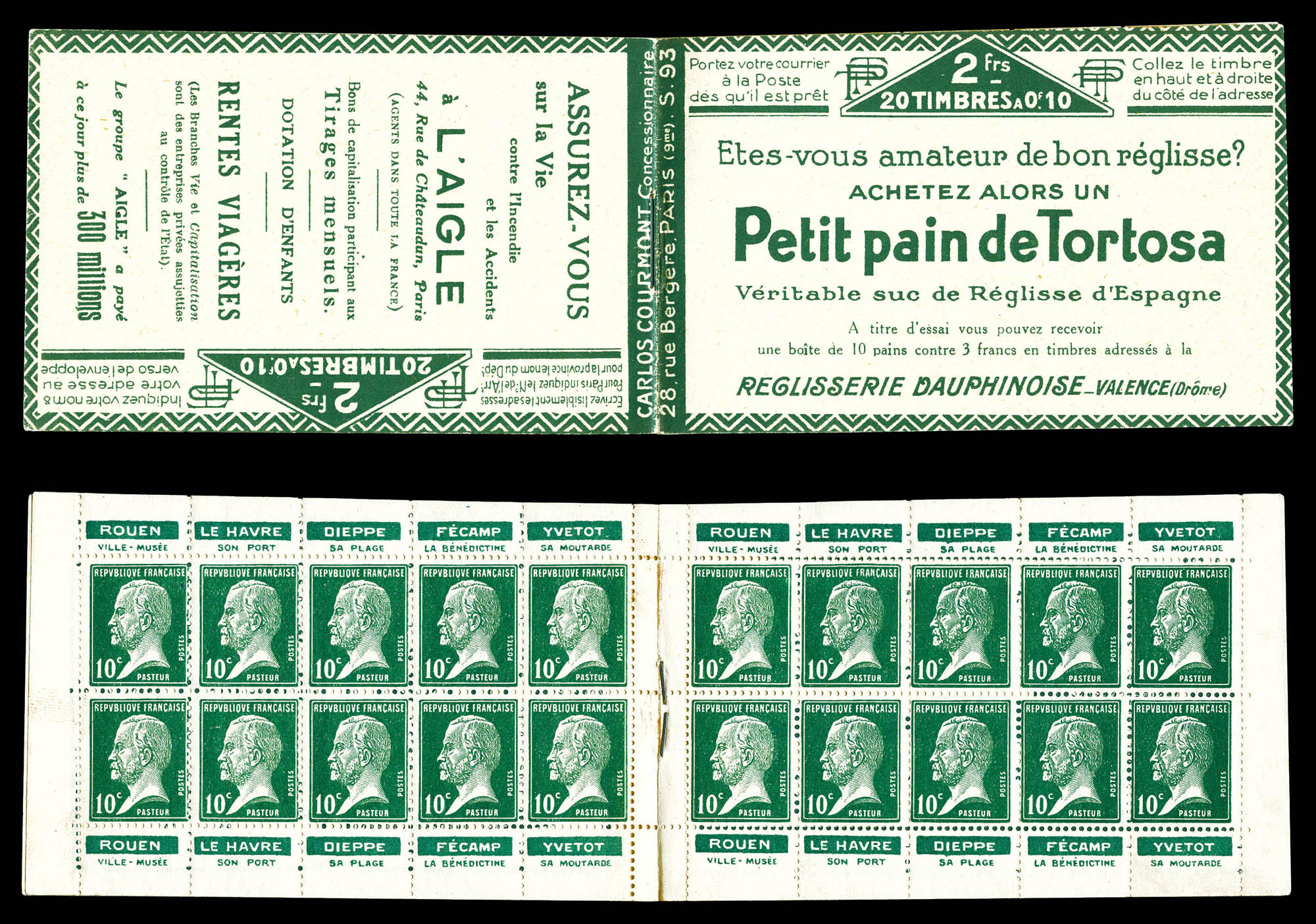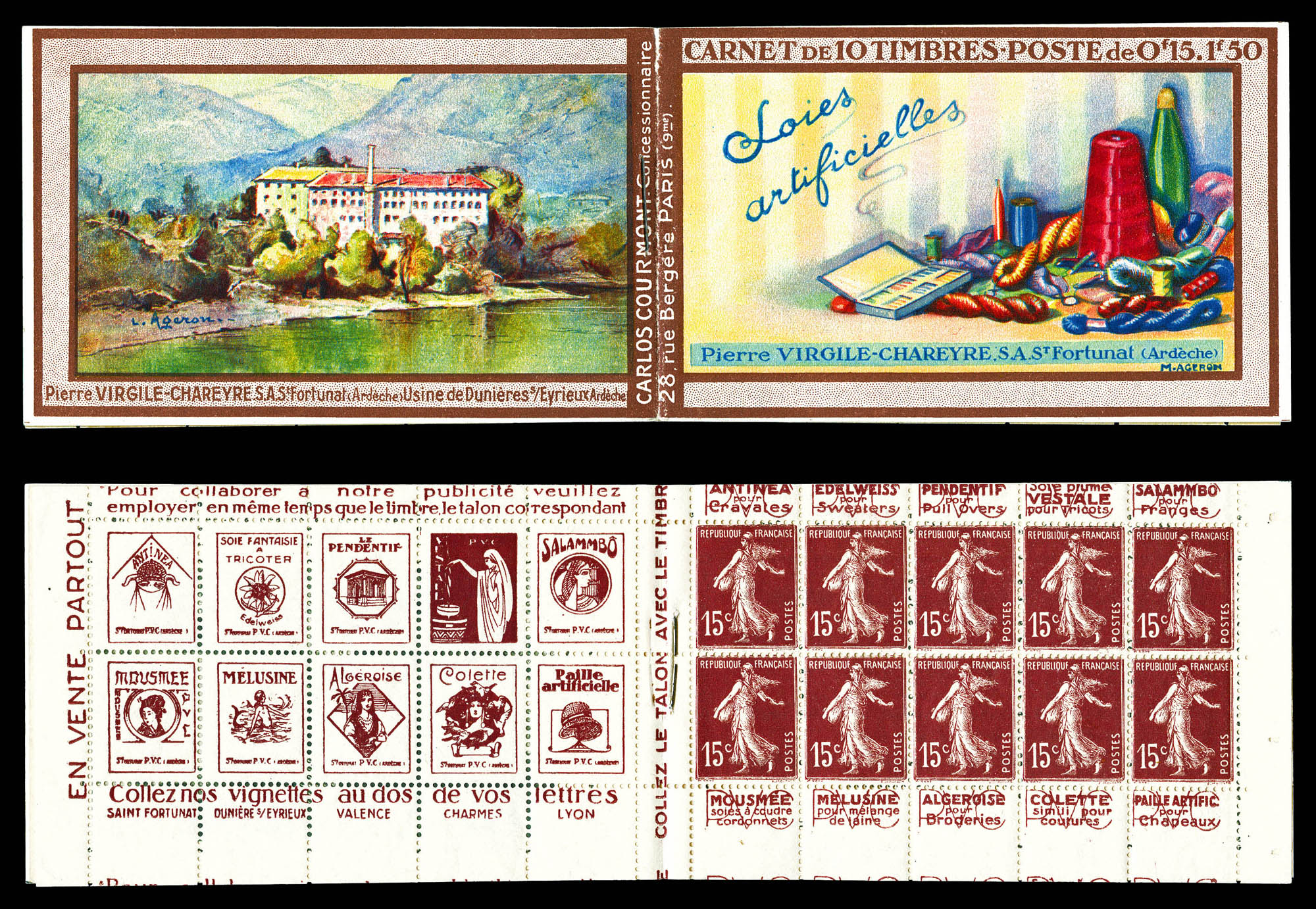 N°170-CP2, VILLE DE NORMANDIE, pub privée sur marge des timbres, RRE et SUP (certificat) Qualité: ** (Image)