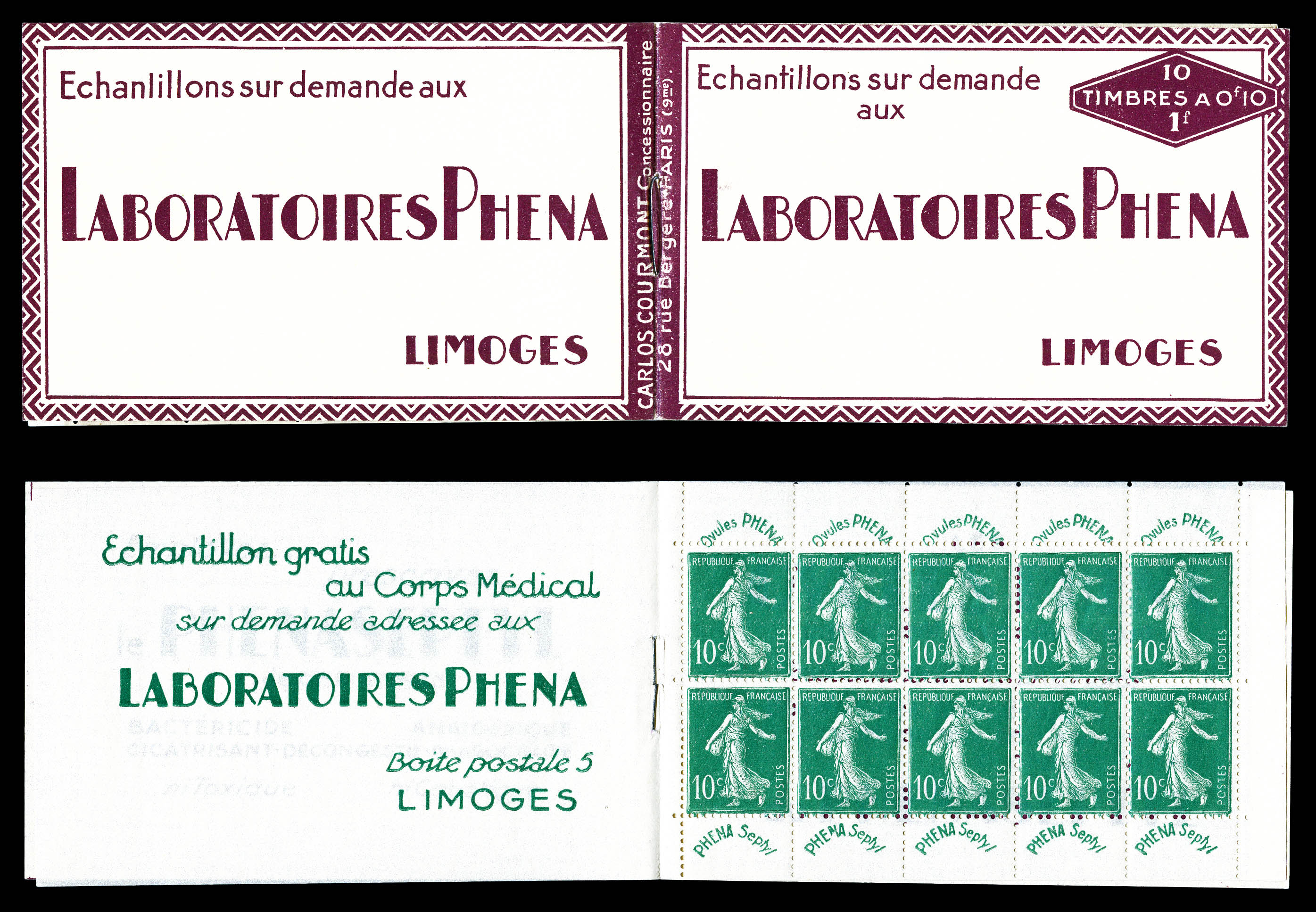 N°188-C2, PHENA, 10 timbres, TB (certificat) Qualité: ** (Image)