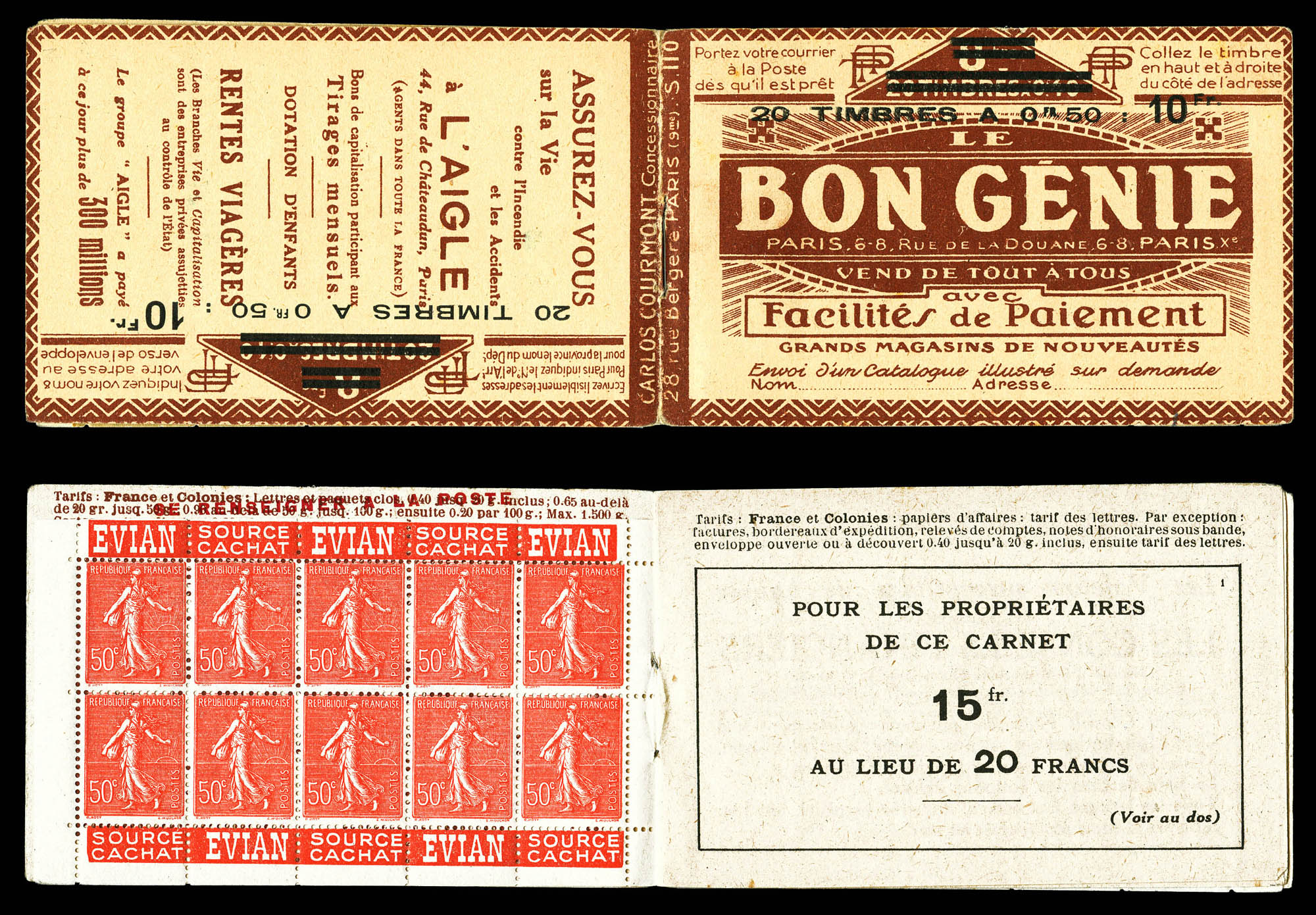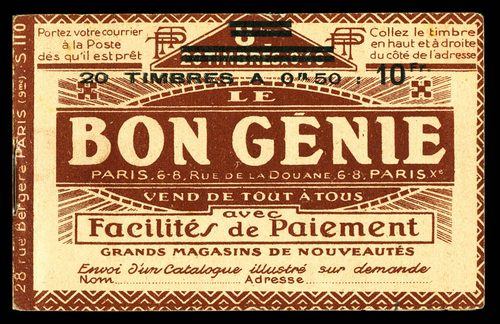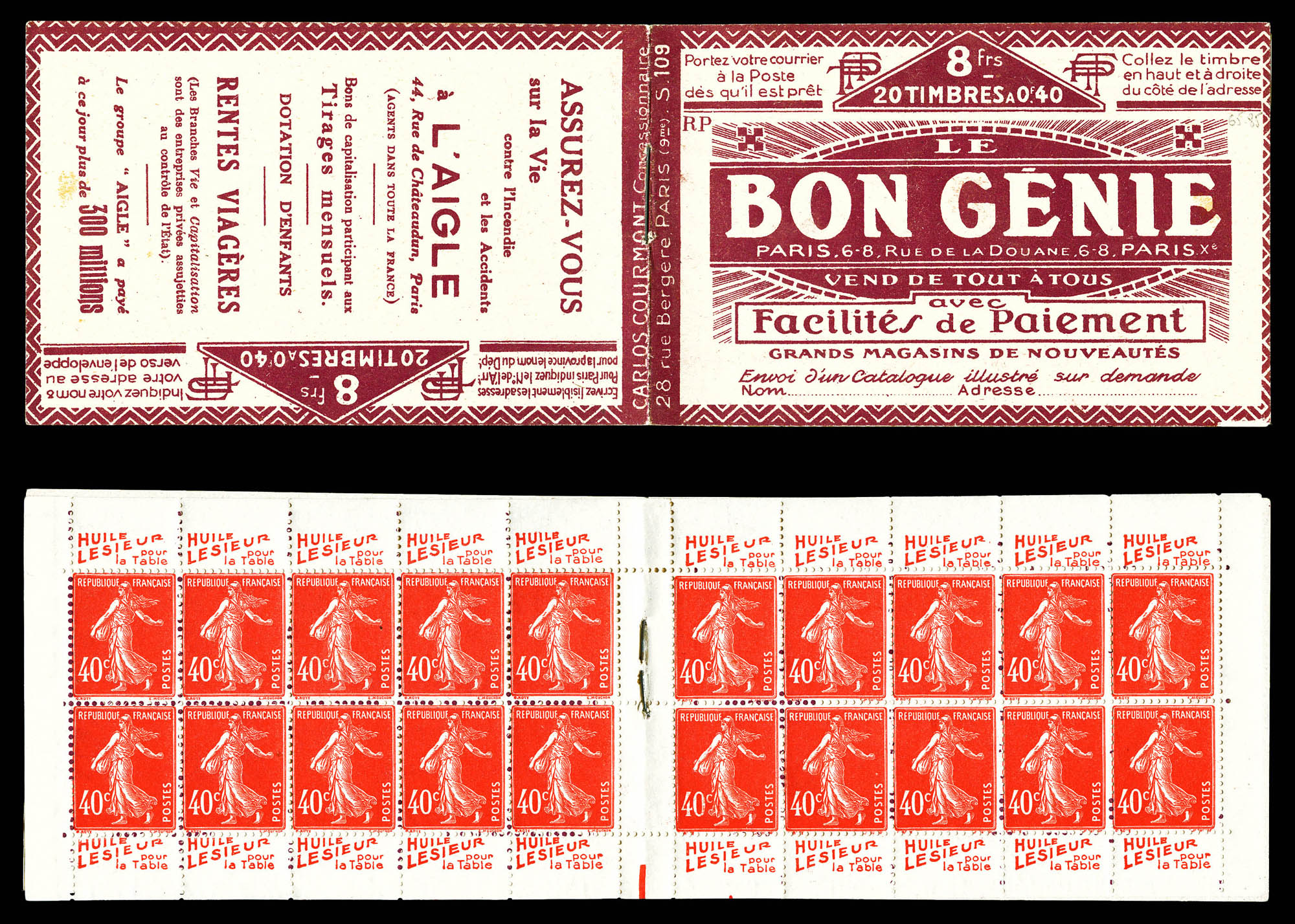 N°199-C3, Série 110S, BON GENIE et AIGLE, couverture surchargée en noir, feuillet de gauche marge sup réduite, sans importance pour