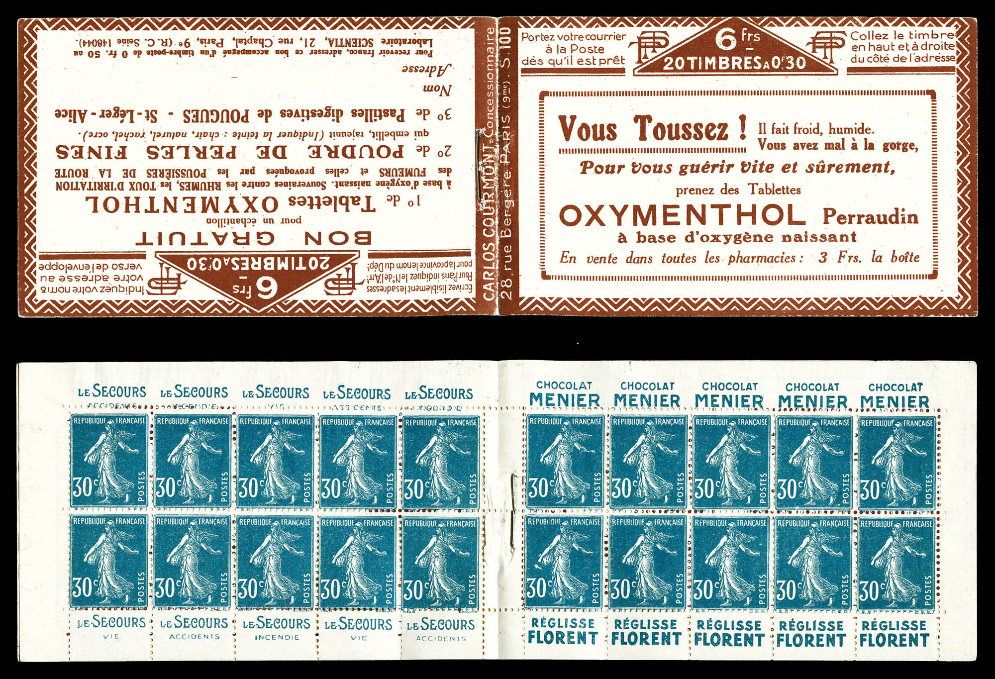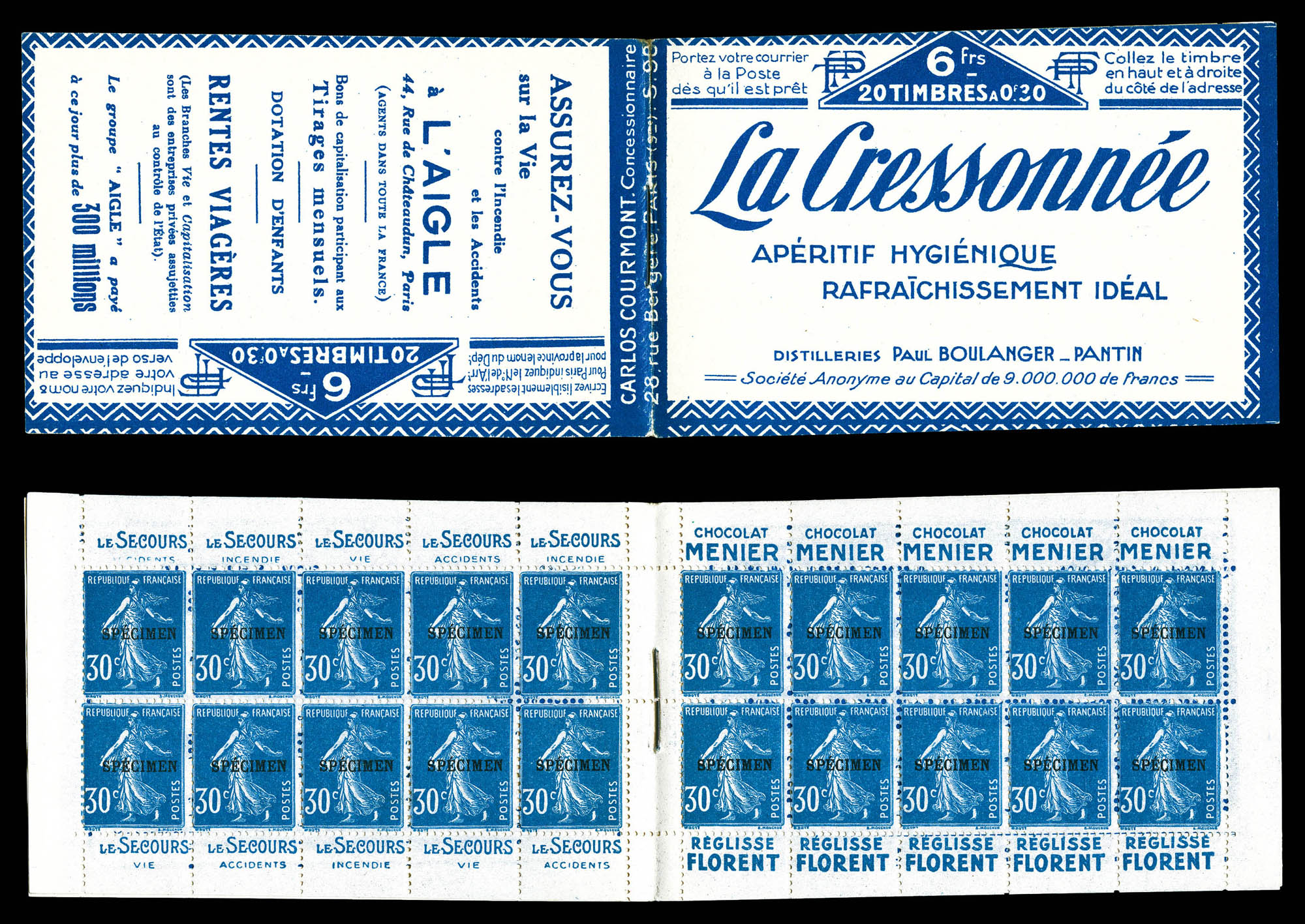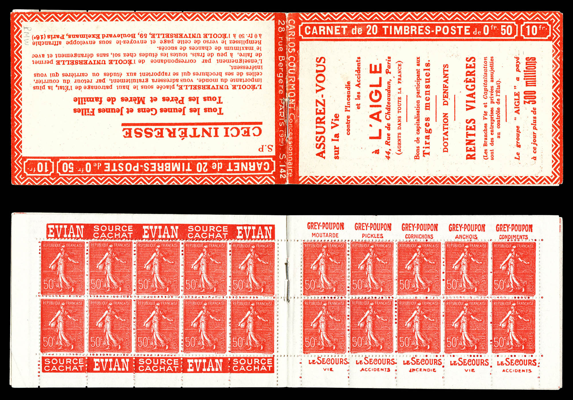 N°199-C3, Série 110S, BON GENIE et AIGLE, couverture surchargée en noir, feuillet de gauche marge sup réduite, sans importance pour