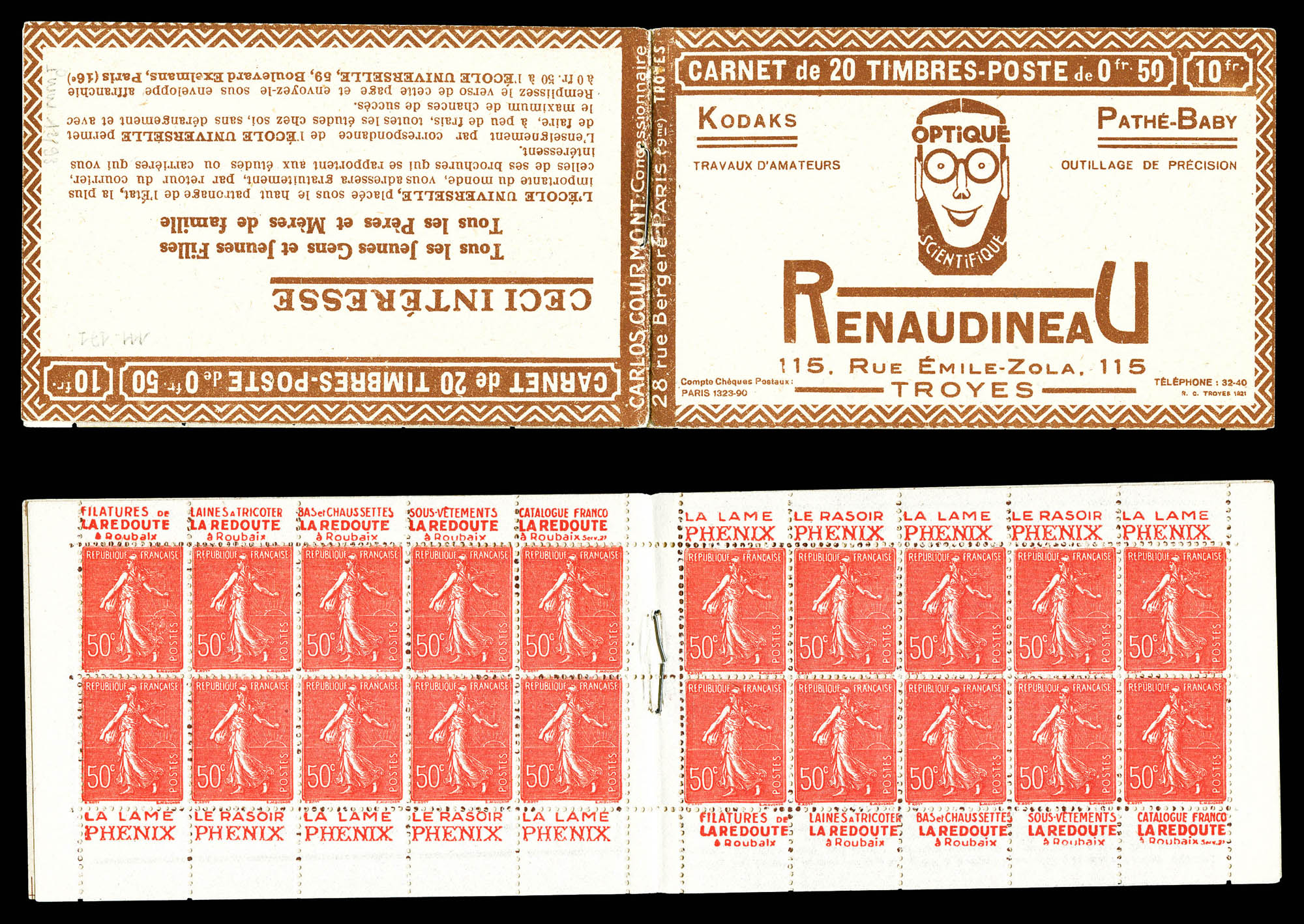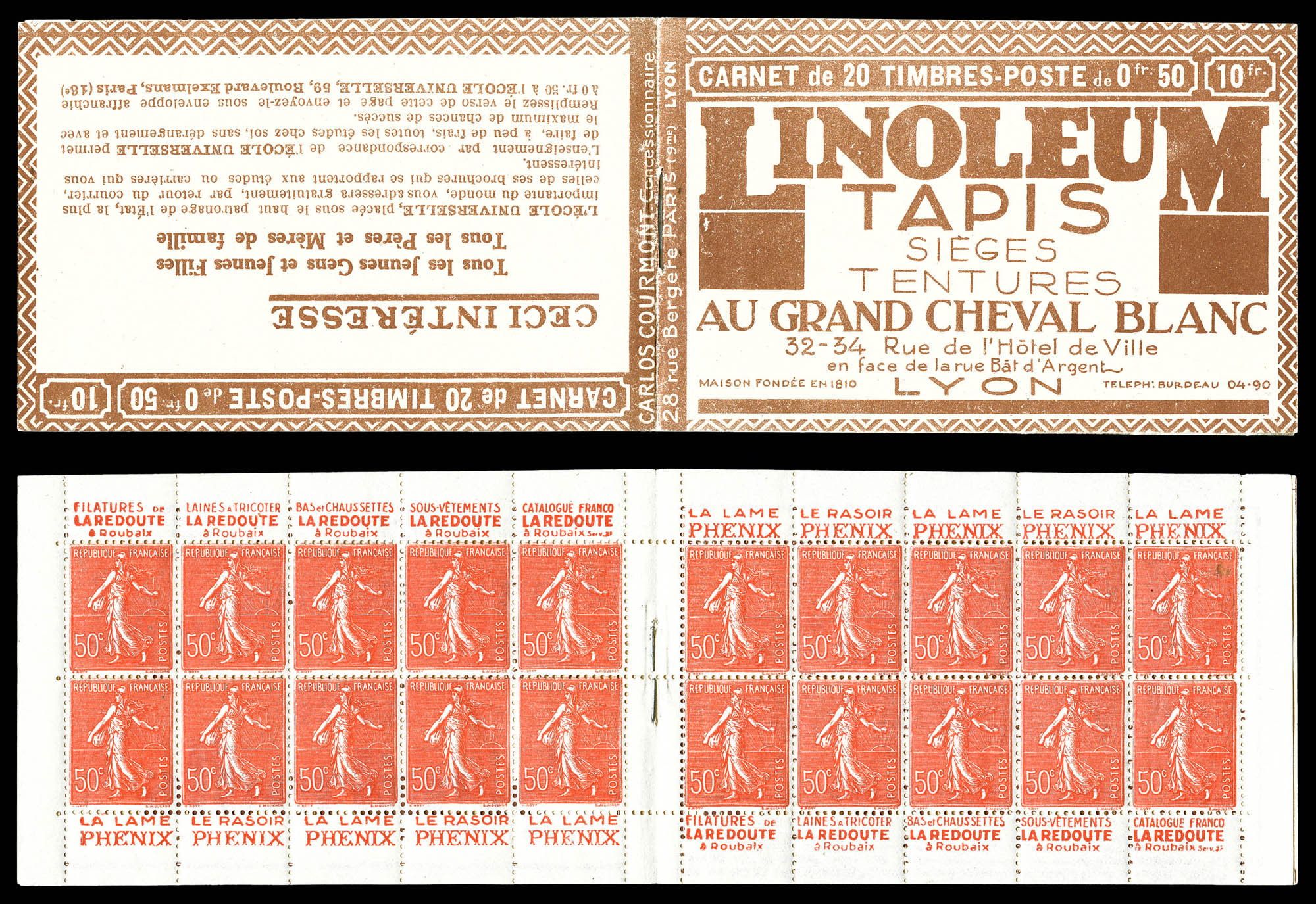 N°199-C42, Série LYON, LINOLEUM TAPIS et EU. 2 carnets connus. SUP. R.R. (certificat) Qualité: ** (Image) (imagea)