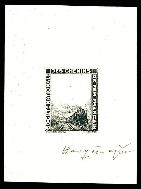 1745 ng imageLocomotive, épreuve en noir sans la valeur signée. TTB (certificat) Qualité: (*) Cote: 575 euros (Image)