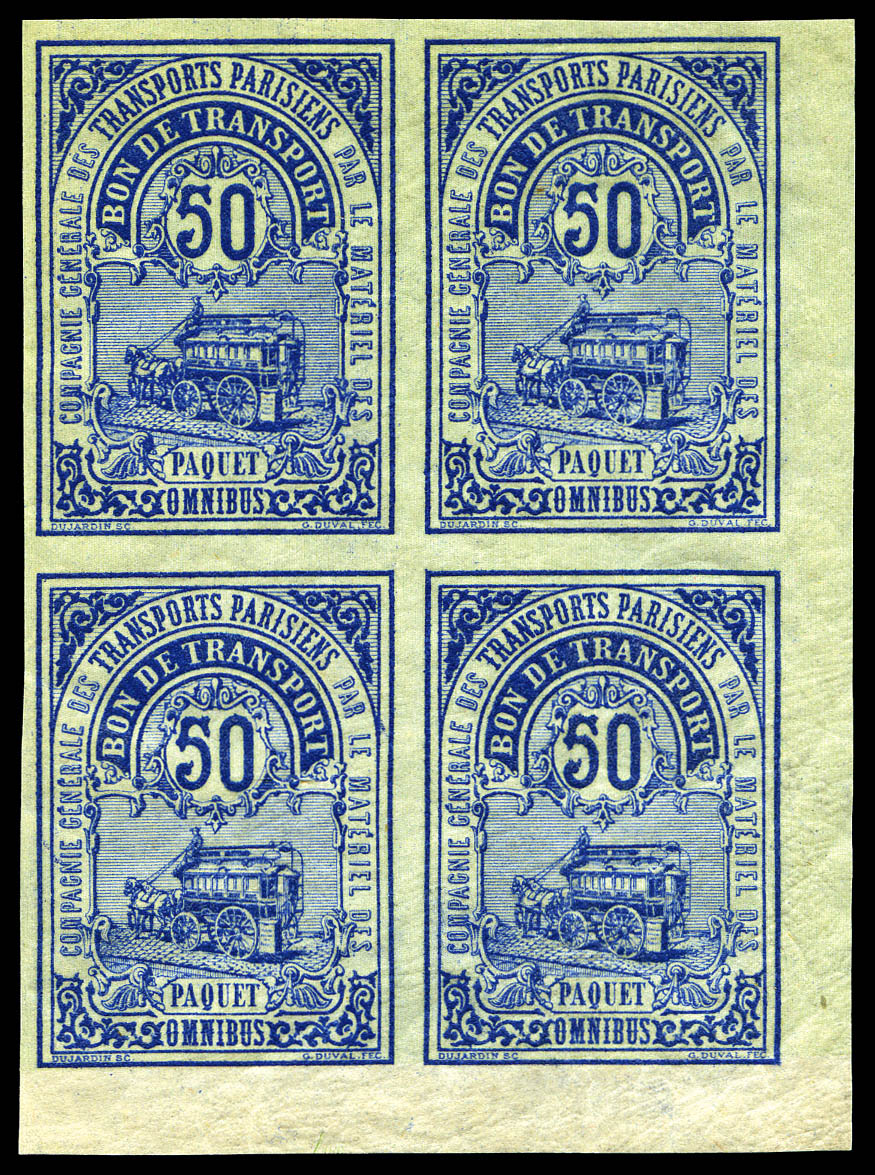 1747 nh imageN°2, (N°Maury), Compagnie des Transports Parisiens, 50c bleu en bloc de quatre cdf, particulièrement rare en multiple. SUP (certificat) Qualité: ** Cote: 4720 euros (Image)