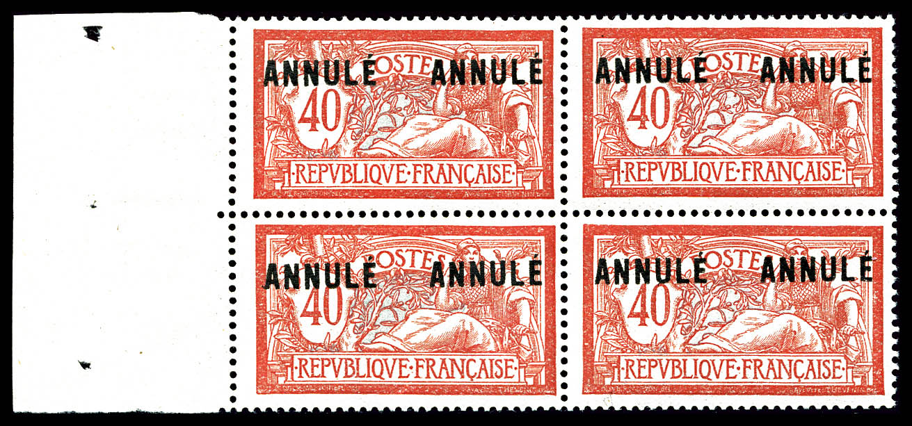 1751 nh imageN°119-CI 2, Merson 40c en bloc de quatre surchargé 'ANNULE' 2x, SUP (certificat) Qualité: ** Cote: 340 euros (Image)