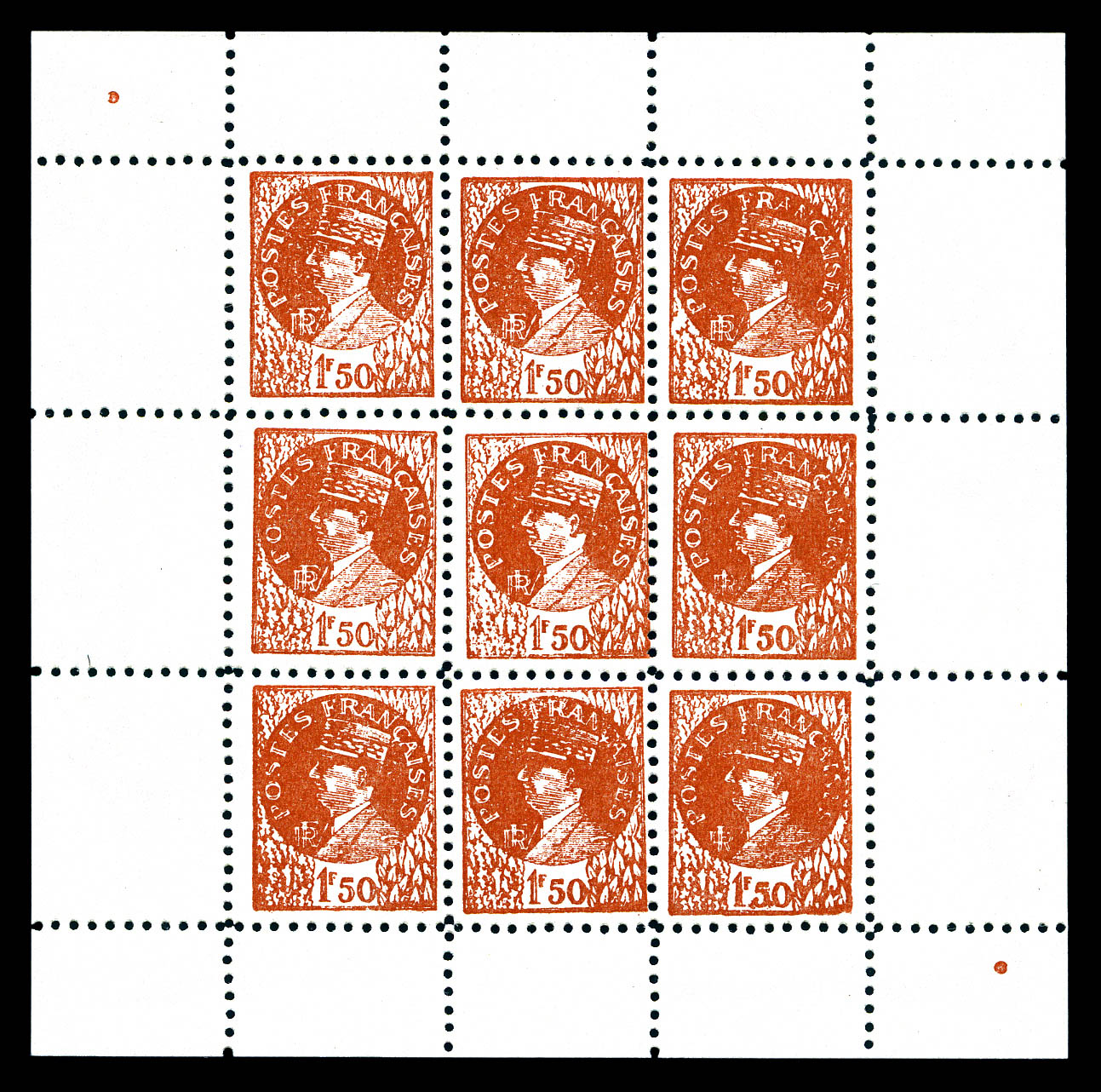 1836 nh imageN°1, DE GAULLE, Emission de Nice: brun clair en feuillet de 9 timbres. SUP Qualité: ** Cote: 600 euros (Image)