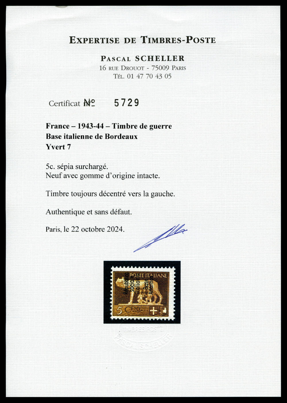 1823 nh imageN°7, 5c sépia 'Louve', (tirage 200 ex), SUPERBE. R.R.R (signé Brun/Jamet/certificats) Qualité: ** Cote: 9250 euros (Image) (imagea) (All Images)