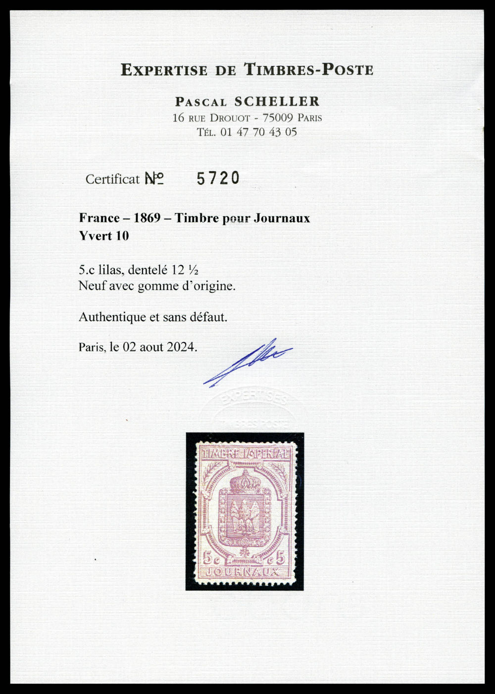1831 og imageN°10, 5c lilas, très jolie pièce. SUP (certificats) Qualité: * Cote: 1600 euros (Image) (imagea) (All Images)