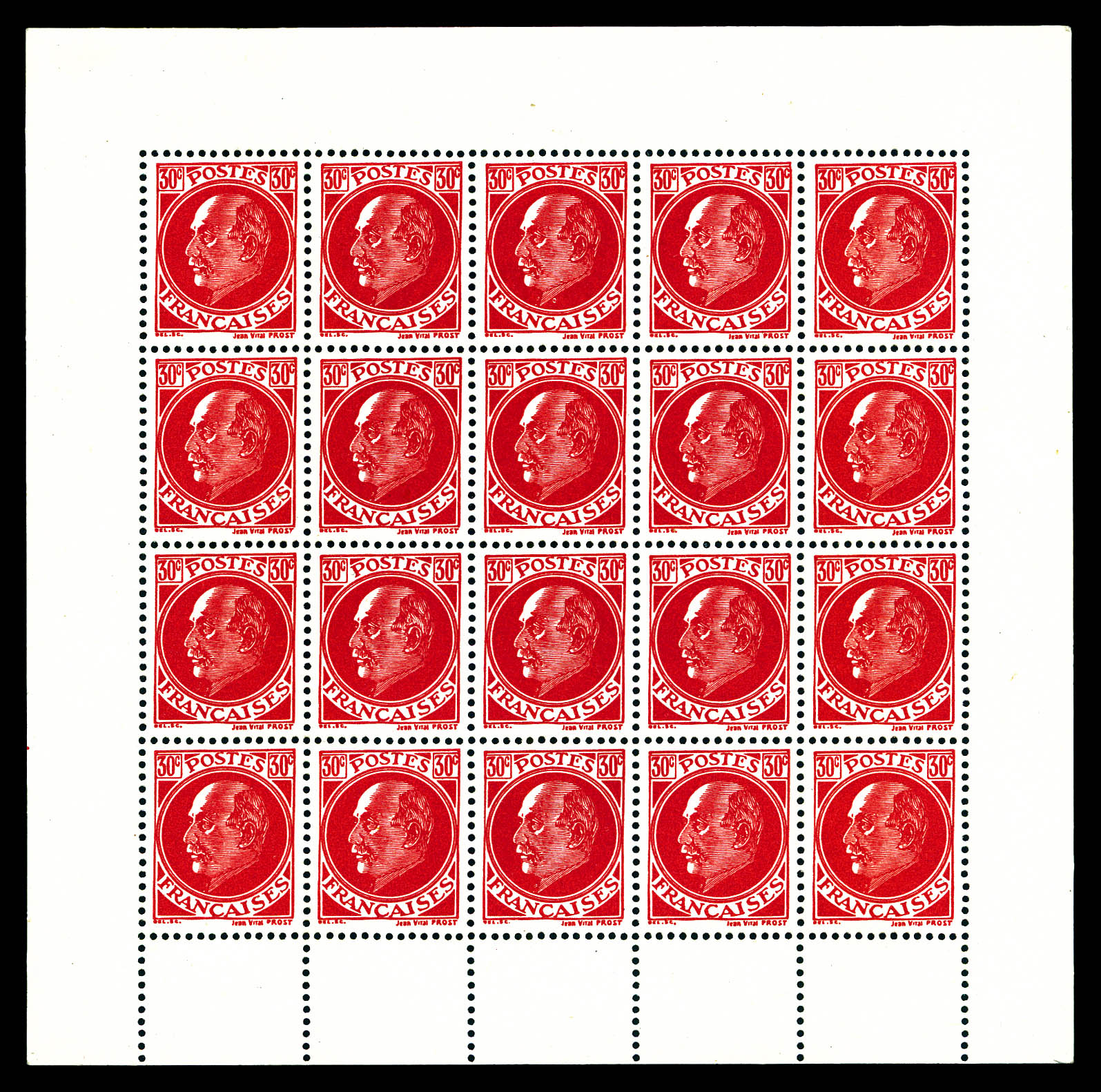 N°13, Pétain-Laval, 30c rouge, bloc complet de 20 exemplaires. TB. R. (certificat) Qualité: * Cote: 1850 euros (Image)