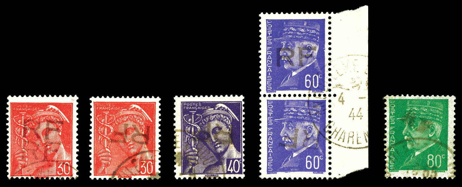 ANGOULEME: N°2 et 3 surcharges renversées + N °2 double surcharge, N° 5 surcharge renversée tenant à normal et N°7. TB Qualité: