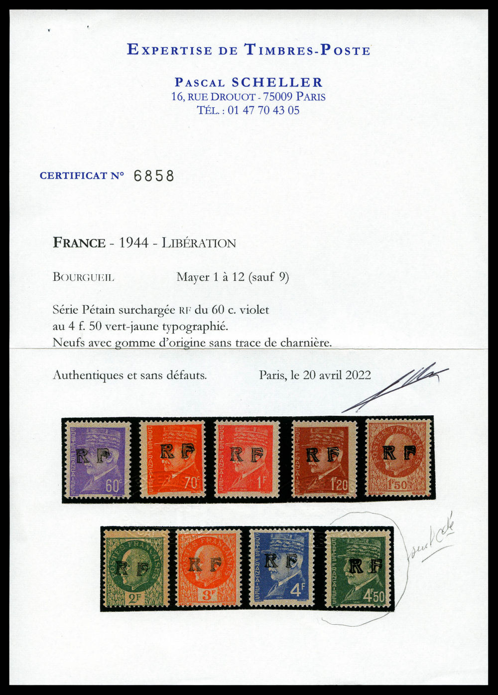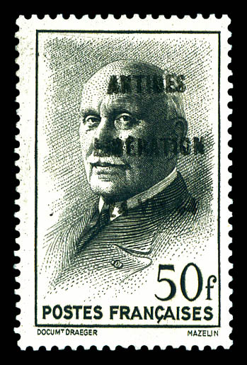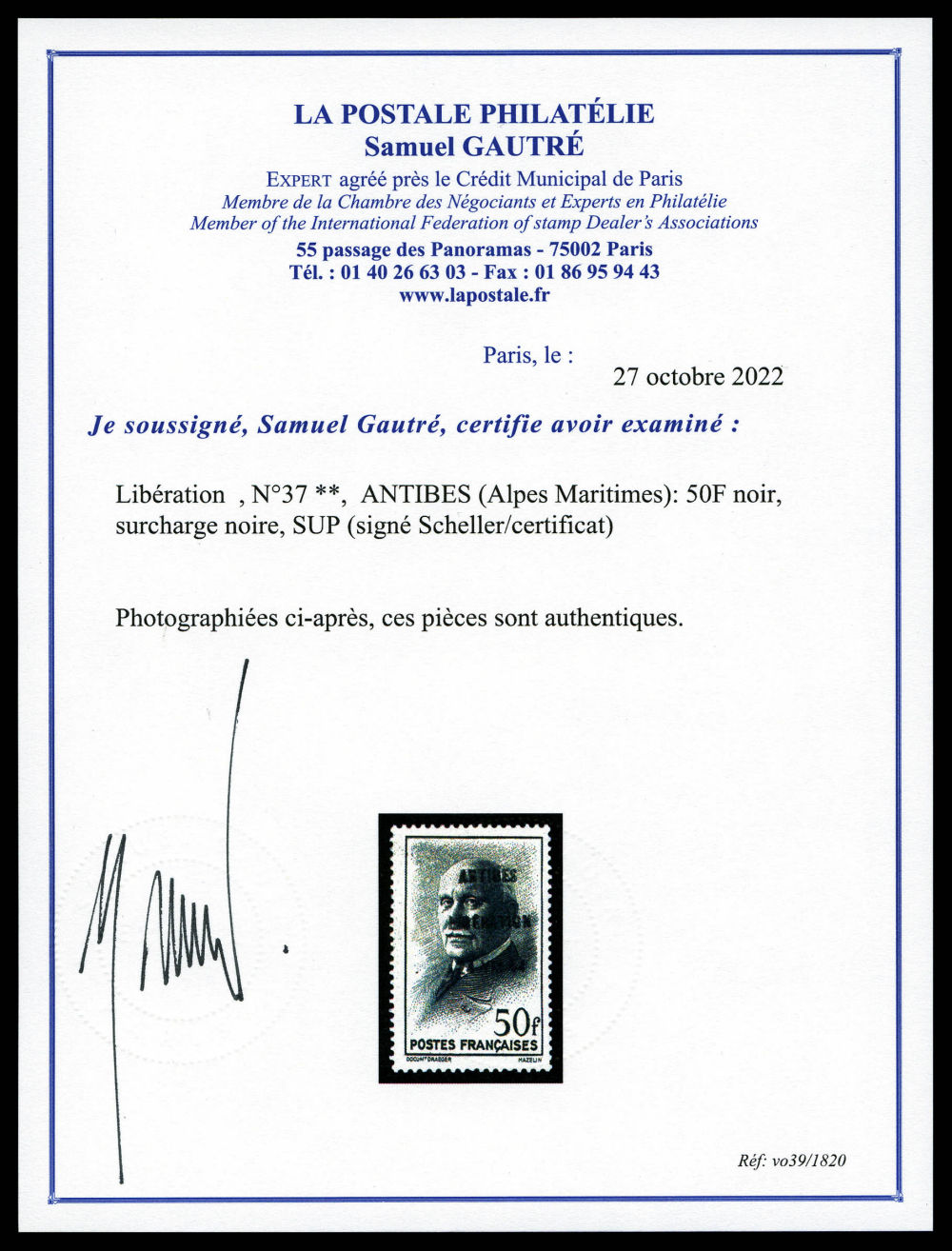 N°37, ANTIBES (Alpes Maritimes): 50F noir, surcharge noire, SUP (signé Scheller/certificat) Qualité: ** Cote: 900 euros (Image) (imagea)