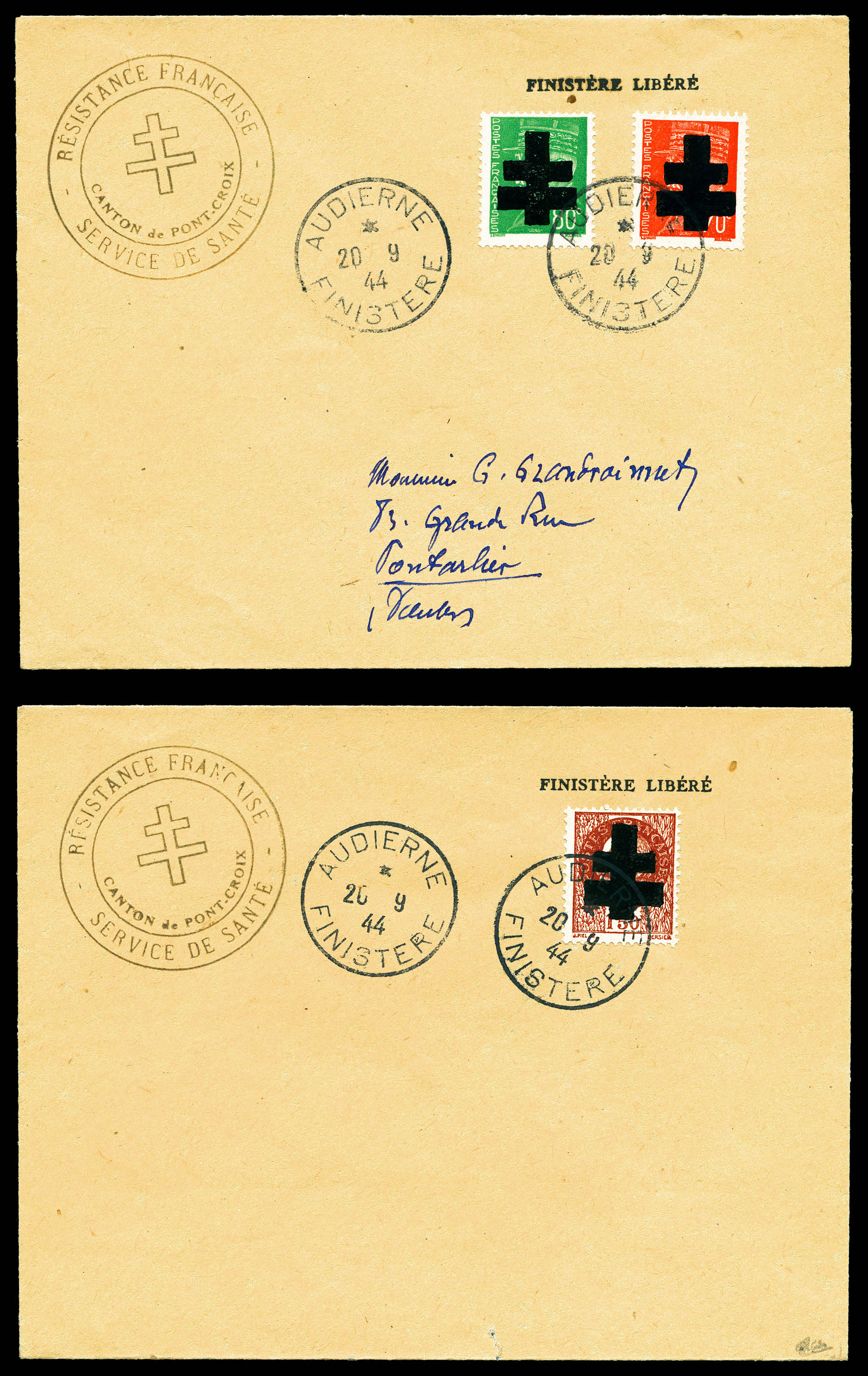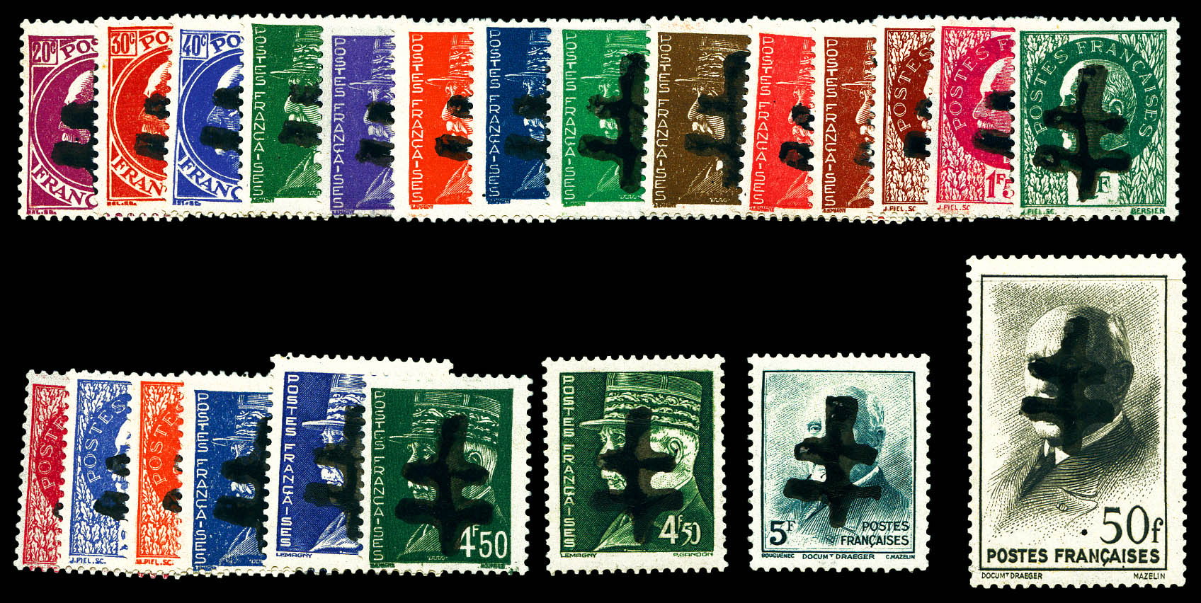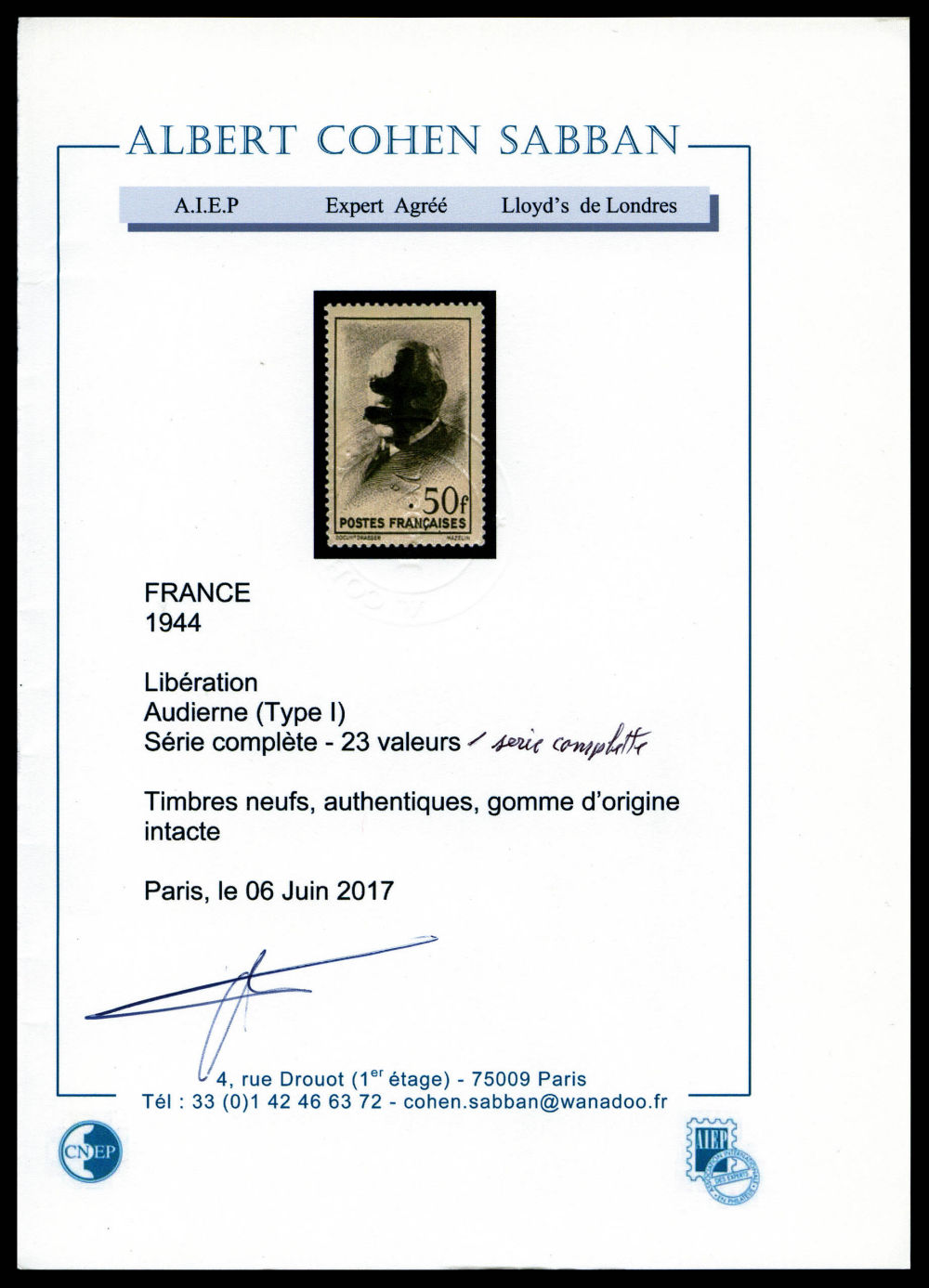 N°1/23, AUDIERNE (Finistère): Série compète type II, les 23 valeurs SUP. R.R. (signés Mayer/certificats) Qualité: ** Cote: 4020