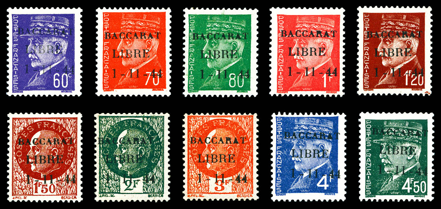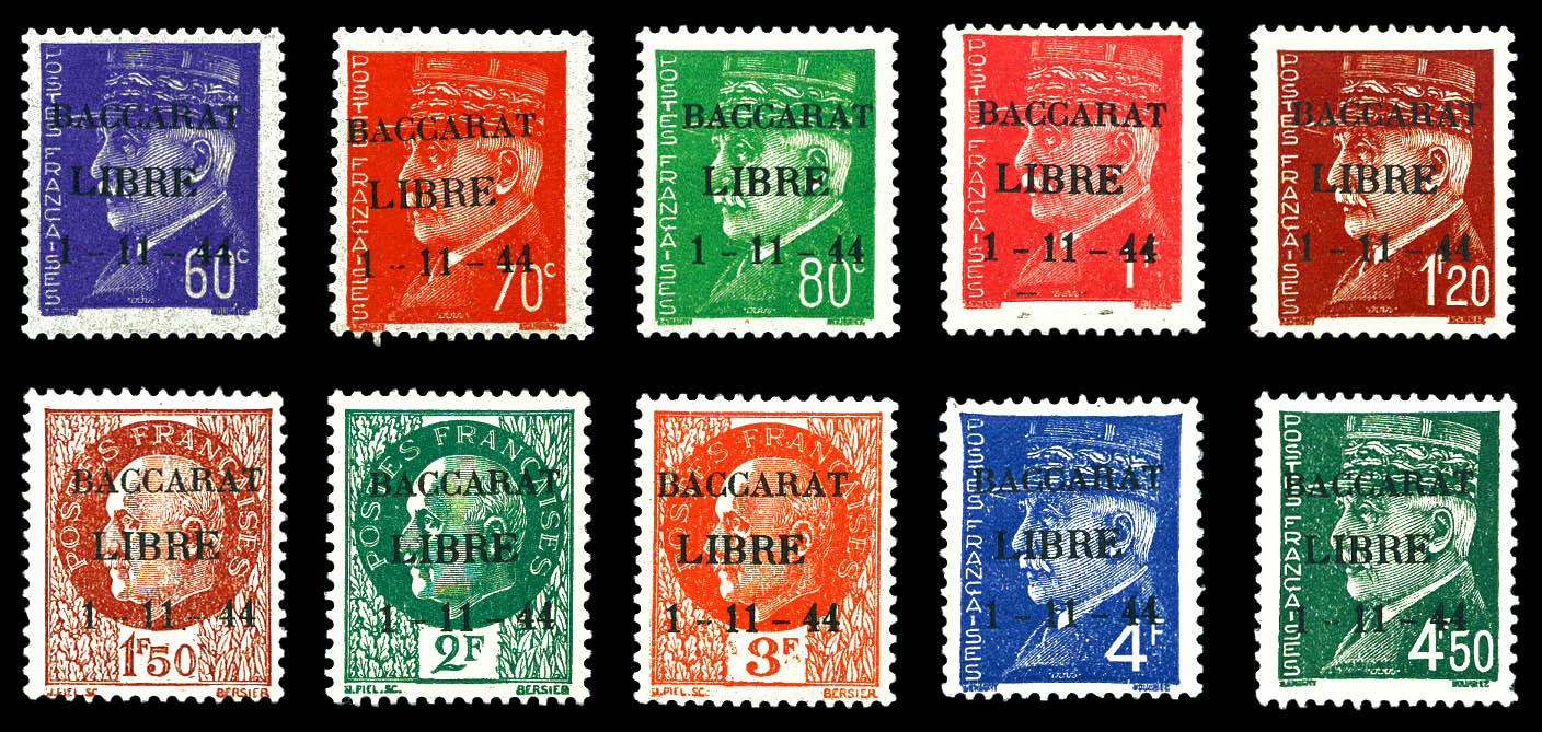 N°1/10, BACCARAT, série complète type I, les 10 valeurs TTB (certificat) Qualité: ** Cote: 834 euros (Image)