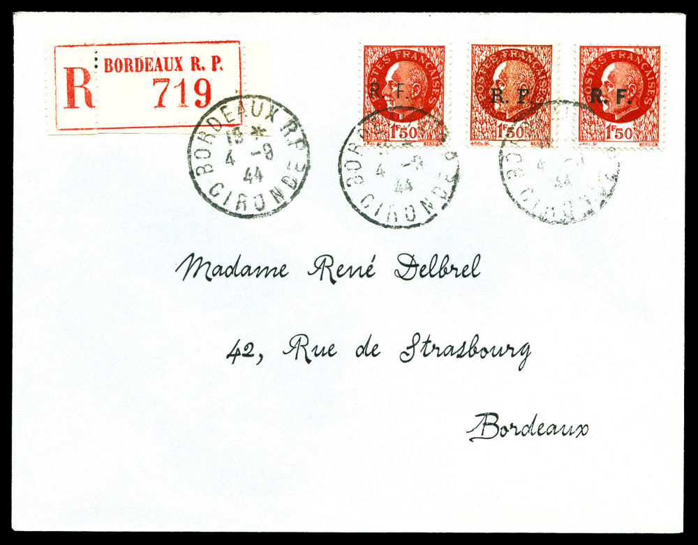 BORDEAUX (Gironde), surcharges renversée: N°4b (tII), 6b (t I et III), 10a (t II et III), les 5 valeurs TB (signés Mayer/certificat)
