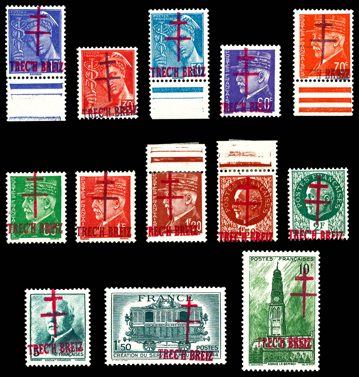 BRETAGNE (Treich-Breiz): N°1, 2, 4, 6 à 12, 15, 16 et 18. TTB. R.R. (certificat) Qualité: * Cote: 2750 euros (Image)