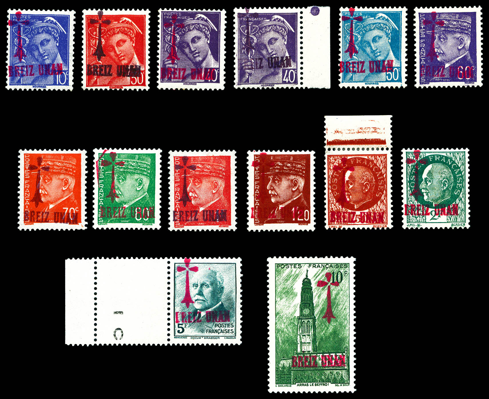 BRETAGNE-Breiz Unan: N°1 à 4, 6 à 12, 15 et 18. TB. R.R. (certificat) Qualité: * Cote: 2675 euros (Image)
