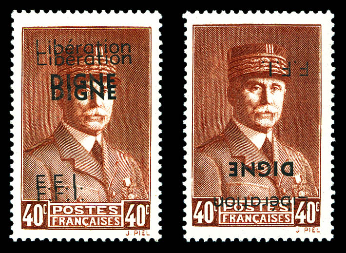 N°13a/13b, DIGNE: 40c Brun rouge: Double surcharge + Surcharge renversée, les 2 exemplaires SUP (certificat) Qualité: ** Cote: 1080
